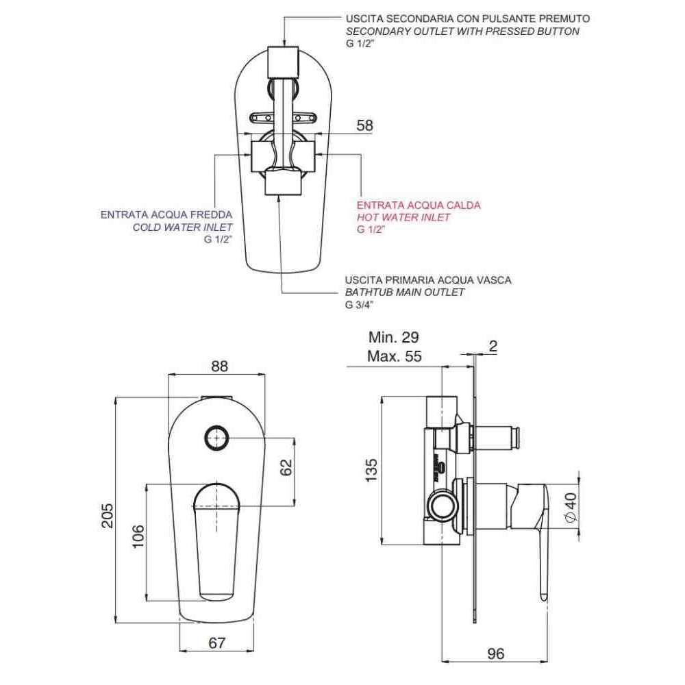 Mosiężna bateria wannowa / prysznicowa Rubinetterie Mariani Armonia