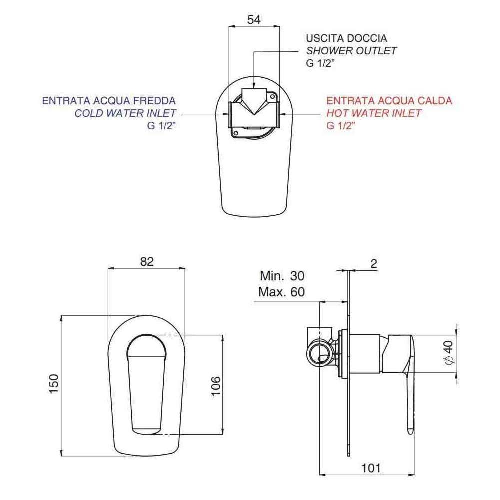 Mosiężna bateria wannowa / prysznicowa Rubinetterie Mariani Armonia