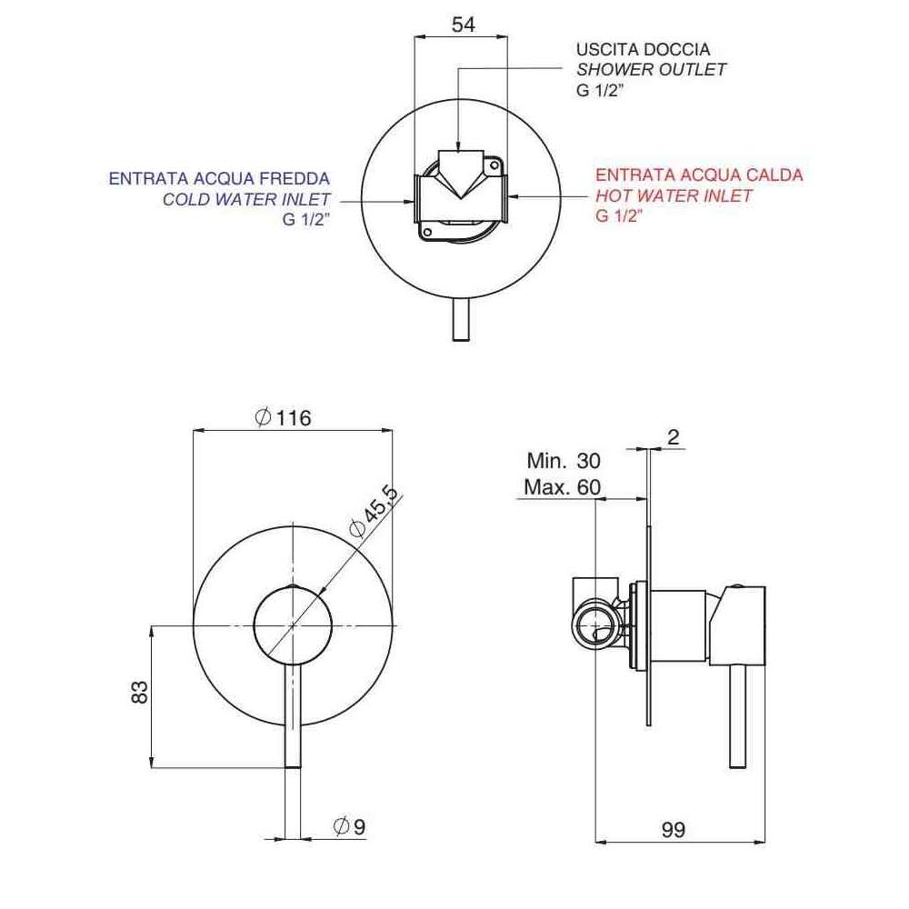Mosiężna bateria wannowa / prysznicowa Rubinetterie Mariani Ultraminimal