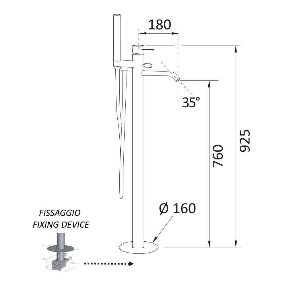 Stojąca wanna mosiężna jednouchwytowa z główką prysznicową Rubinetterie Mariani Ultraminimal