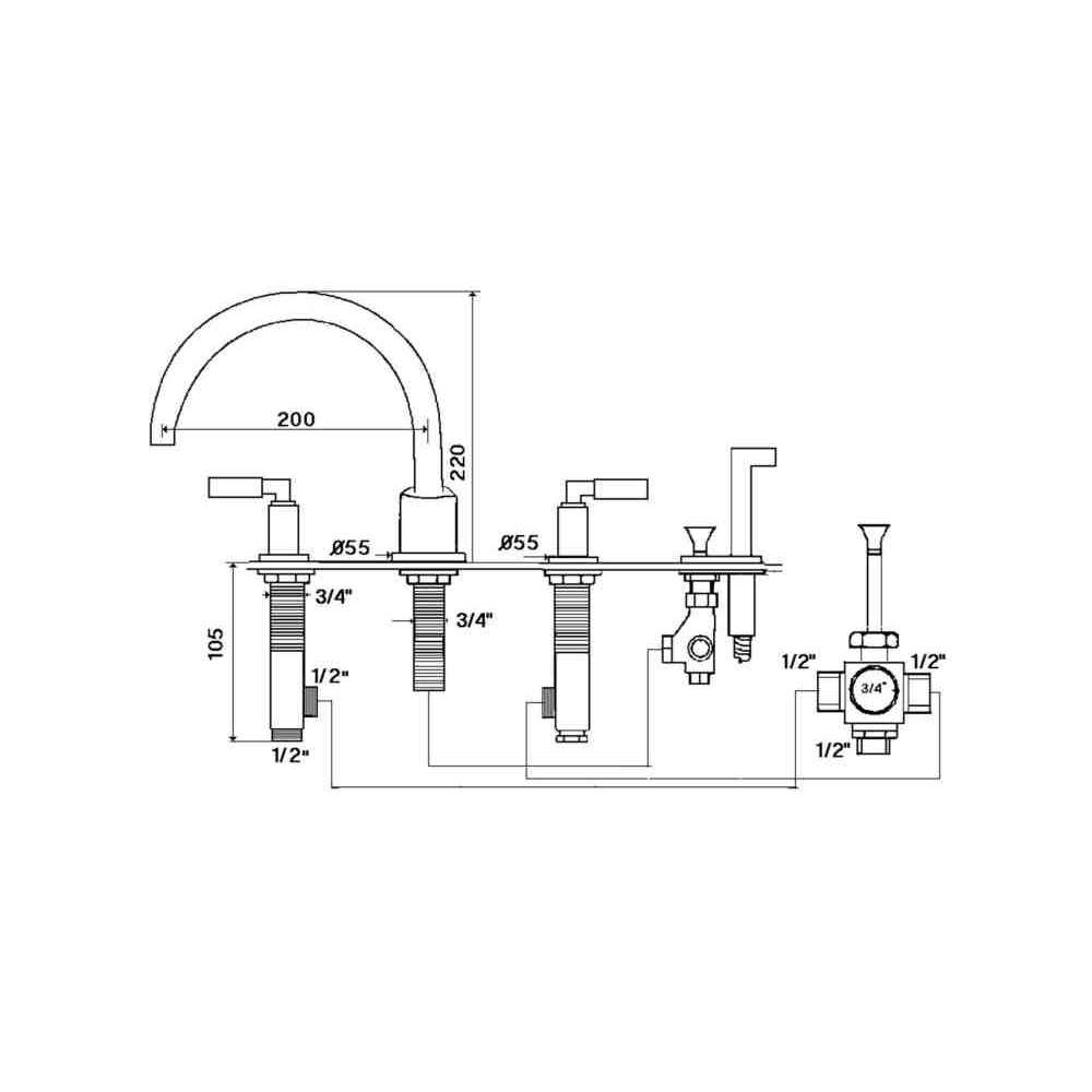 Zestaw wannowy 4-otworowy z główką prysznicową RVB 4 hole bathtub set