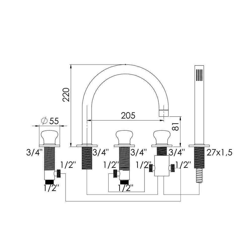 Zestaw wannowy 5-otworowy z główką prysznicową RVB Deville