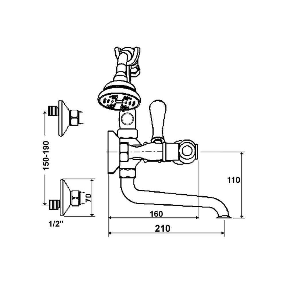 2-otworowa bateria wannowa ścienna z główką prysznicową RVB Flamant Butler