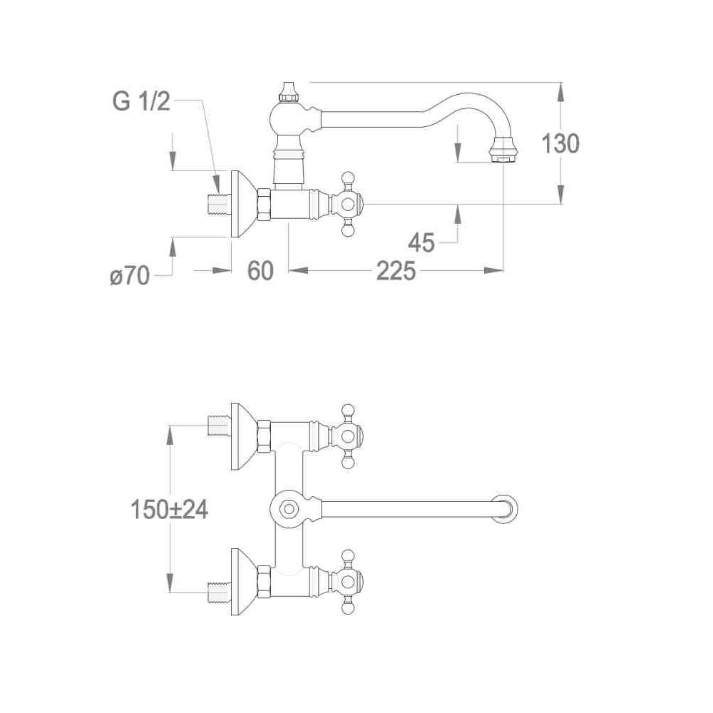 Fir Italia, kuchnie klasyczne, krany kuchenne, zlewy i krany kuchenne, krany kuchenne, krany kuchenne w stylu klasycznym, krany kuchenne metalowe, krany kuchenne mosiężne, krany kuchenne naścienne, krany kuchenne z 2 otworami, krany kuchenne z obrotową wylewką, krany mostkowe