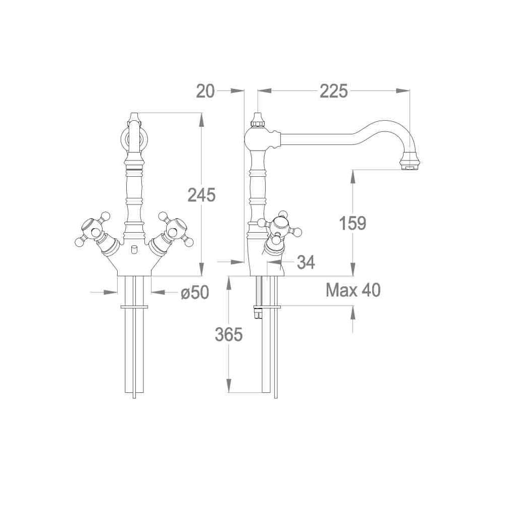 Fir Italia, kuchnie klasyczne, krany kuchenne, zlewy i krany kuchenne, kran kuchenny, krany kuchenne w stylu klasycznym, krany kuchenne metalowe, krany kuchenne mosiężne, krany kuchenne z 1 otworem, krany kuchenne z wylewką obrotową, krany kuchenne nablatowe