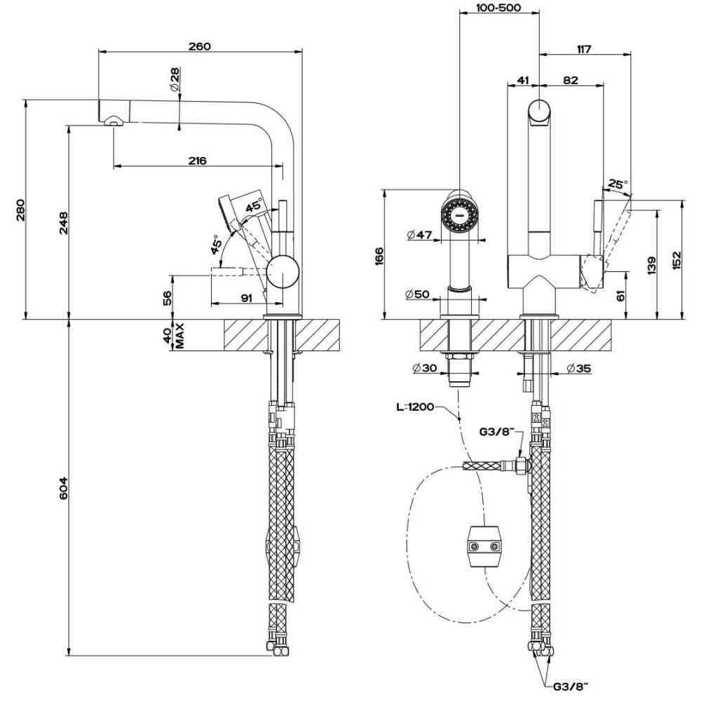 Bateria kuchenna z mosiądzu chromowanego z wyciąganą wylewką Gessi Oxygene