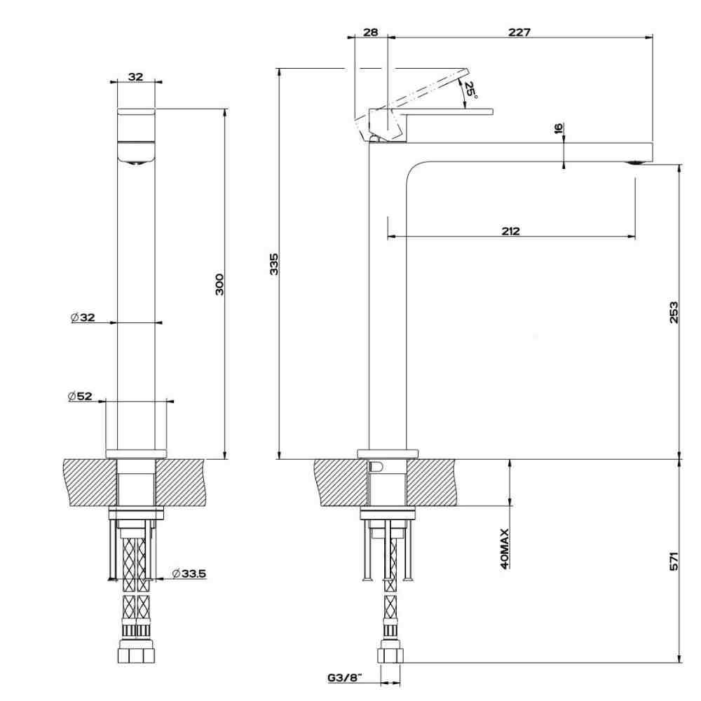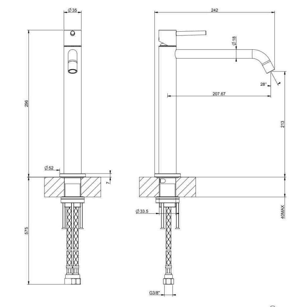 Bateria kuchenna nablatowa 1-otworowa z mosiądzu Gessi HELIUM