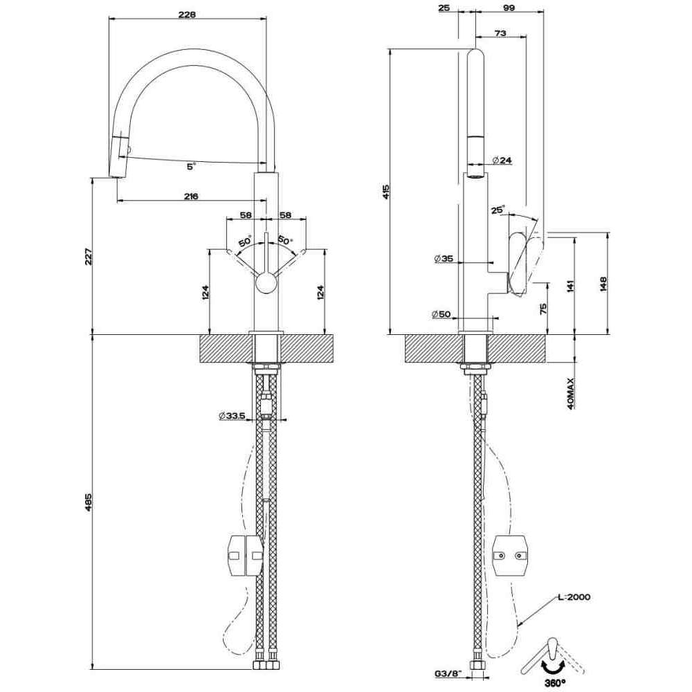 Gessi, krany kuchenne, zlewy i krany kuchenne, krany kuchenne, krany kuchenne w stylu współczesnym, krany kuchenne metalowe, krany kuchenne z mosiądzu, krany kuchenne z chromowanego mosiądzu, krany kuchenne, krany kuchenne z 1 otworem, krany kuchenne z wyciąganym sprayem, krany kuchenne z Obrotowa wylewka, kuchenne krany nablatowe, kuchenne krany z jednym uchwytem