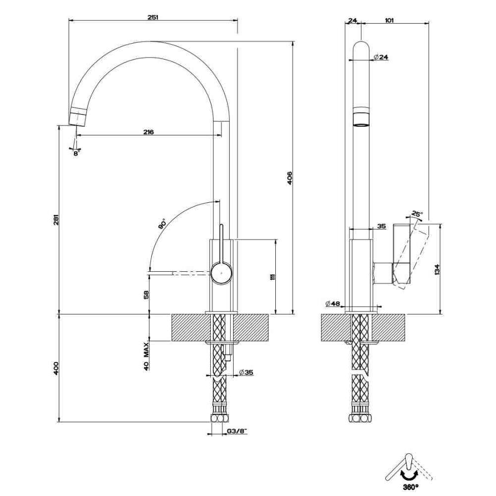 Gessi, krany kuchenne, zlewy i krany kuchenne, krany kuchenne, krany kuchenne w stylu współczesnym, krany kuchenne metalowe, krany kuchenne z mosiądzu, krany kuchenne z chromowanego mosiądzu, krany kuchenne z mieszaczem, krany kuchenne z 1 otworem, krany kuchenne na blat
