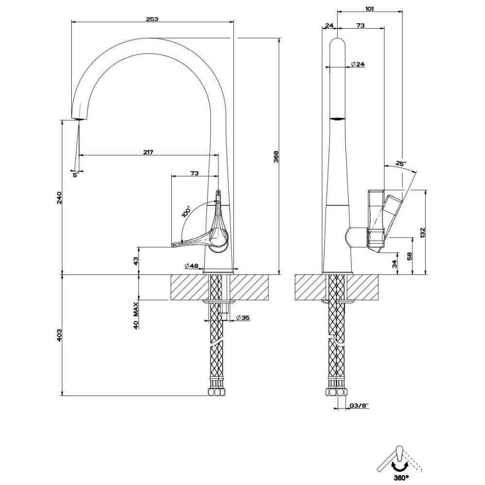 Gessi, krany kuchenne, zlewy i krany kuchenne, krany kuchenne, krany kuchenne w stylu współczesnym, krany kuchenne metalowe, krany kuchenne z mosiądzu, krany kuchenne z chromowanego mosiądzu, krany kuchenne, krany kuchenne z otworem 1, krany kuchenne z obrotową wylewką, krany kuchenne nablatowe, Jednouchwytowe baterie kuchenne