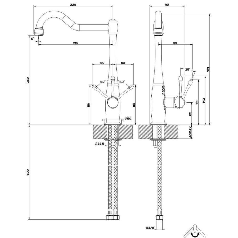 Tradizione to mikser kuchenny nablatowy wykonany z chromowanego mosiądzu, dostępny w różnych wykończeniach.