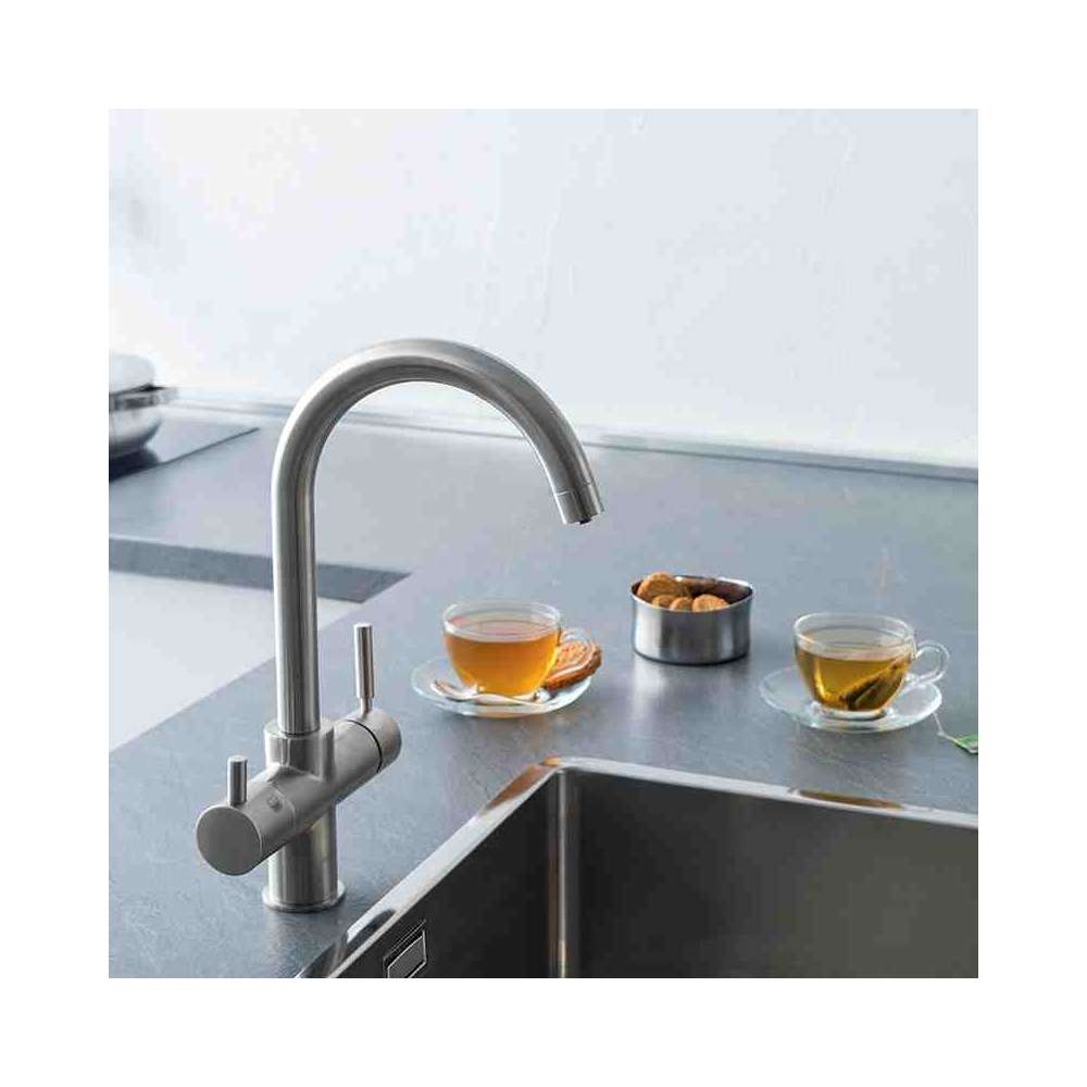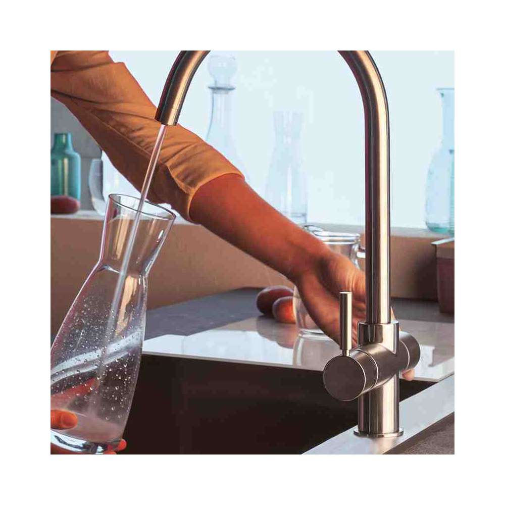 Guglielmi przedstawia PURA kolekcji, najnowszej generacji bateria kuchenna, która zawiera do 5 różnych funkcji w jednym modelu: dostarczanie przefiltrowanej wody, która jest niegazowana, schłodzona, gazowana, 100° ciepła i woda użytkowa.PURA jest synonimem zrównoważonego rozwoju i szacunku dla środowiska, ponieważ całkowicie zeruje marnotrawstwo wynikające z zakupu wody butelkowanej System PURA gwarantuje odczuwalne oszczędności w zakresie wysiłku, czasu, pieniędzy i obciążeń Nie będzie już konieczności kupowania wody butelkowanej ze znaczną redukcją emisji CO2, ponieważ dzięki PURA wystarczy po prostu obrócić lewą rączką lub aktywować sterowanie dotykowe, aby otrzymać niegazowaną wodę przefiltrowaną o temperaturze pokojowej i schłodzoną, ale też gazowaną, lekko musującą, gorącą.