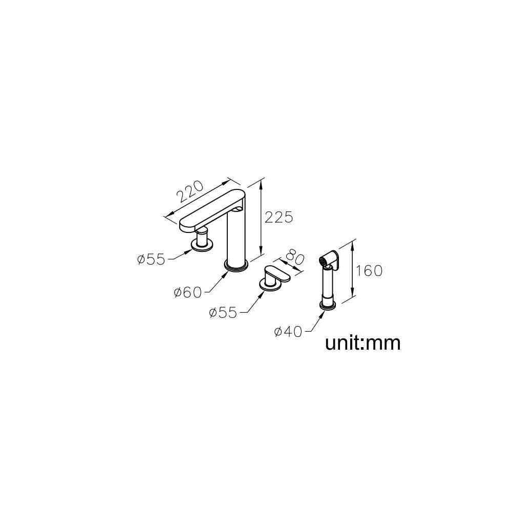 Bateria kuchenna nablatowa z wyciąganą wylewką prysznicową Justime Charming