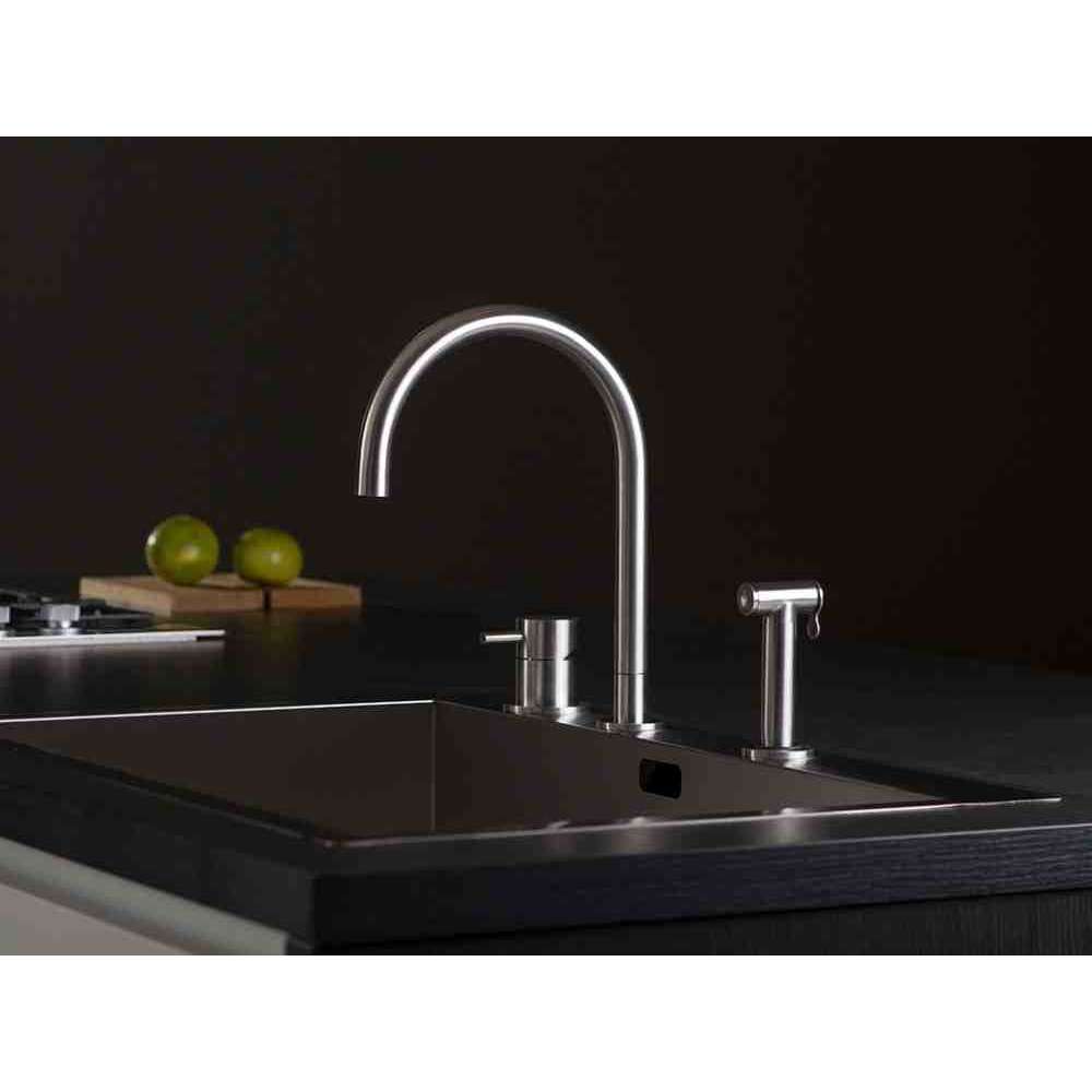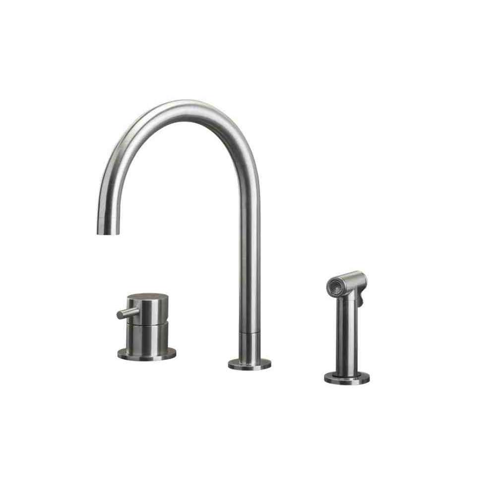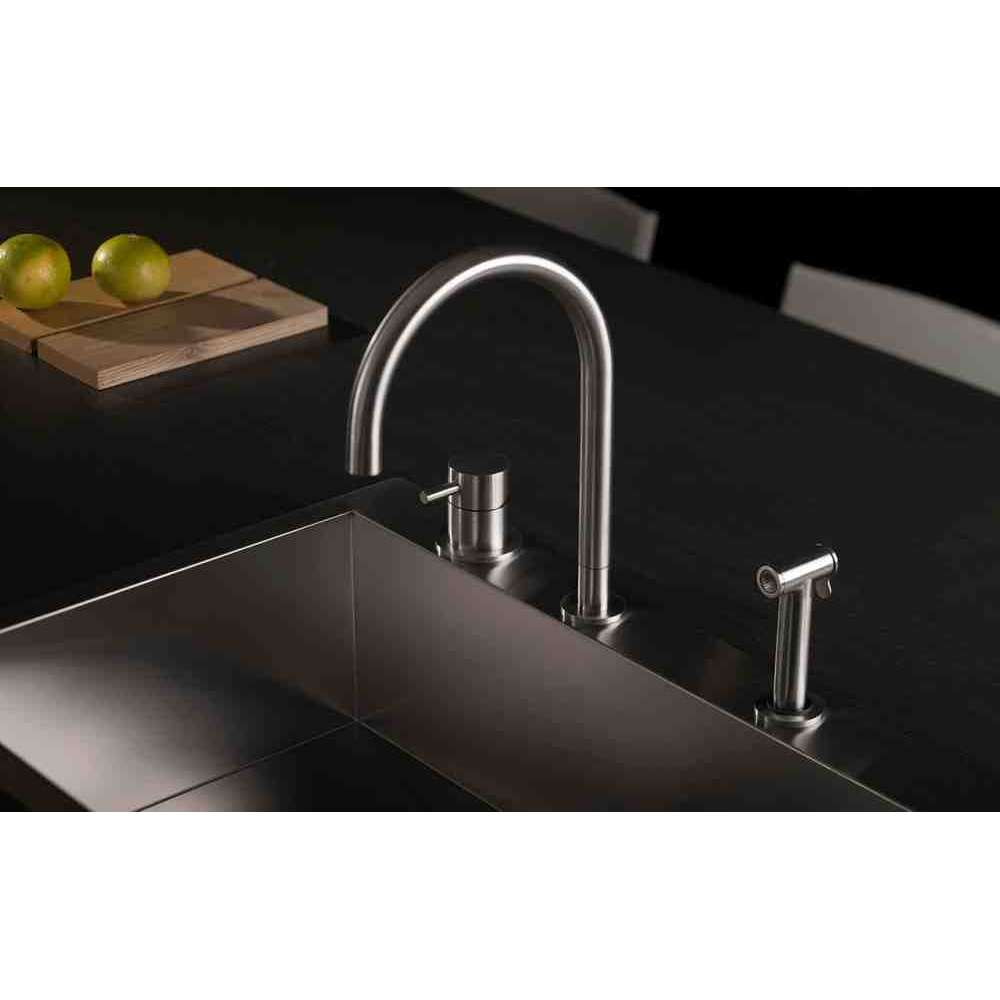 MINA, krany kuchenne, zlewy i krany kuchenne, krany kuchenne, krany kuchenne w stylu współczesnym, krany kuchenne designerskie, krany kuchenne ze stali nierdzewnej, krany kuchenne metalowe, krany kuchenne ze sprayem, krany kuchenne z mieszaczem, krany kuchenne ze szczotkowanym wykończeniem, krany kuchenne z 3 otworami
