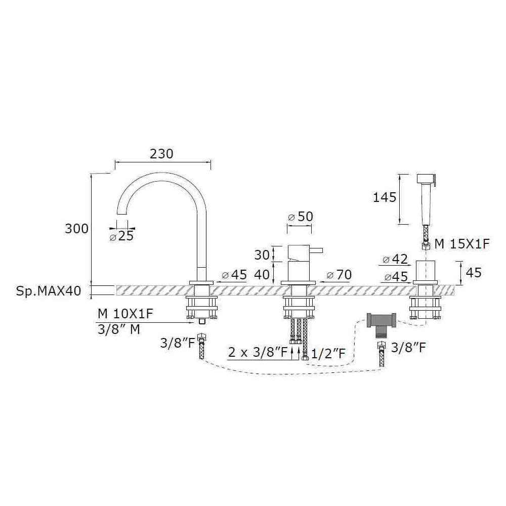 Bateria kuchenna z natryskiem ze stali nierdzewnej Mina THREE