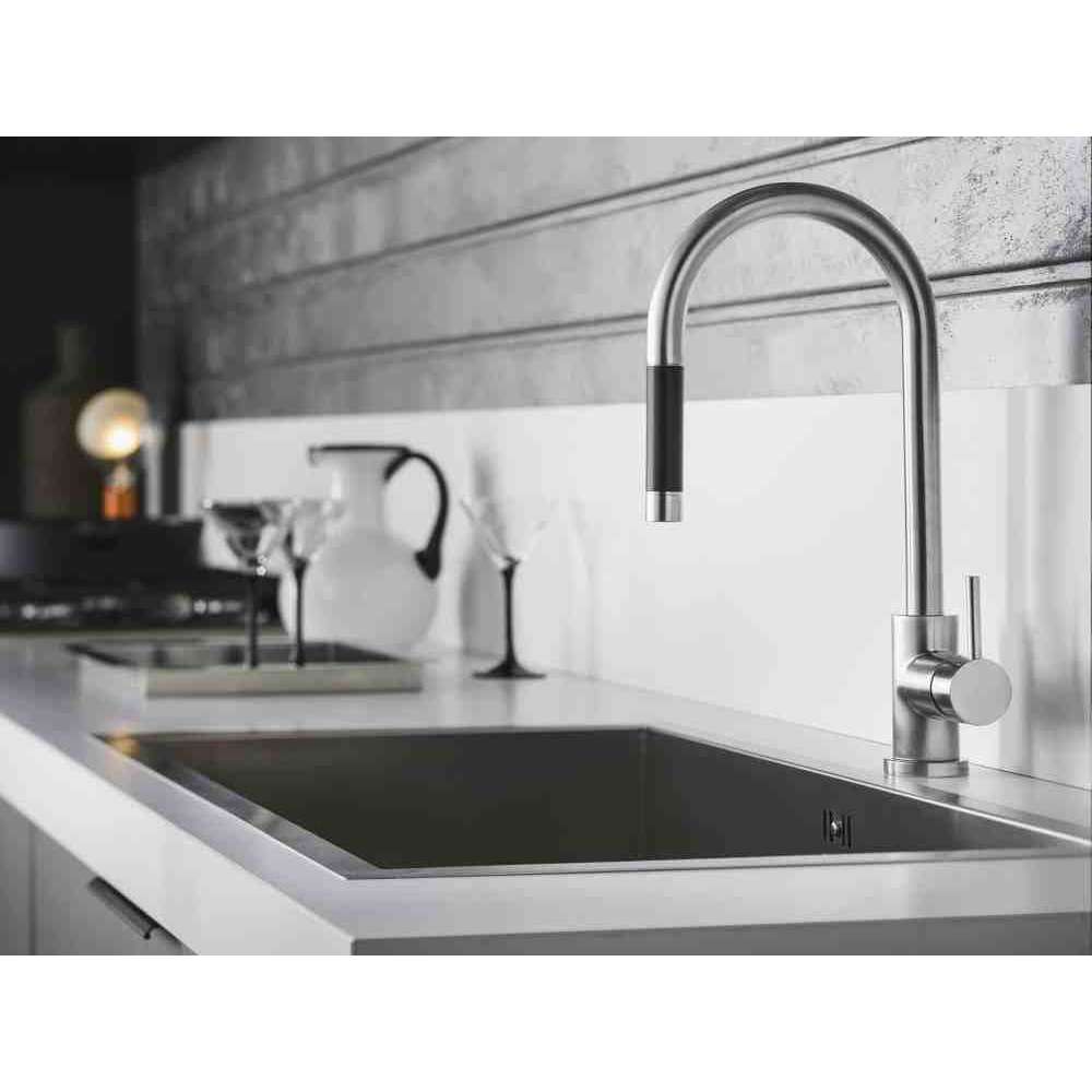 Chromowana bateria kuchenna z wyciąganą wylewką prysznicową Nobili Rubinetterie Live