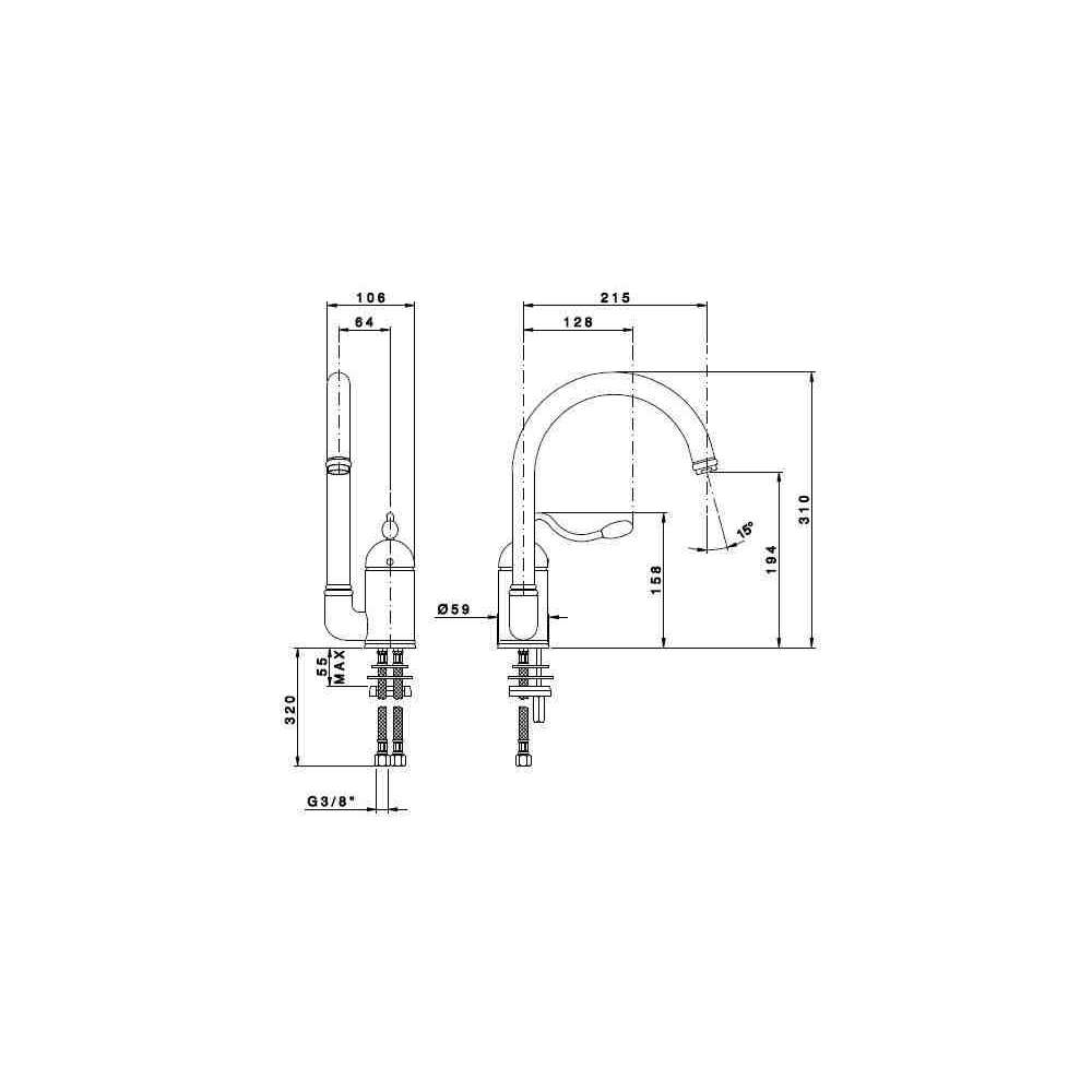 Officina Nicolazzi, Signal, krany kuchenne, zlewy i krany kuchenne, kran kuchenny, krany kuchenne w stylu współczesnym, krany kuchenne metalowe, krany kuchenne mosiężne, krany kuchenne, krany kuchenne z 1 otworem, krany kuchenne z wylewką obrotową, krany kuchenne nablatowe, uchwyt pojedynczy Baterie kuchenne