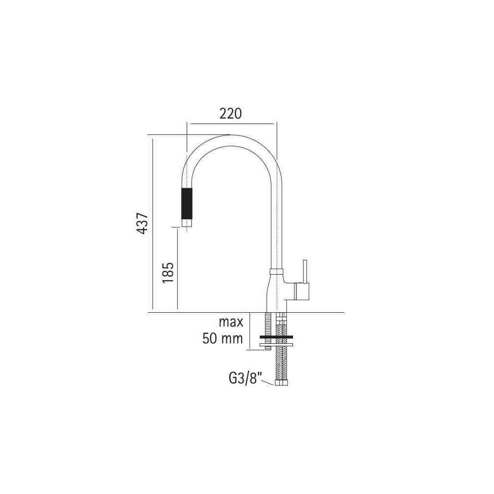 Bateria kuchenna nablatowa z wyciąganą wylewką prysznicową Quadrodesign HITECH 97KG
