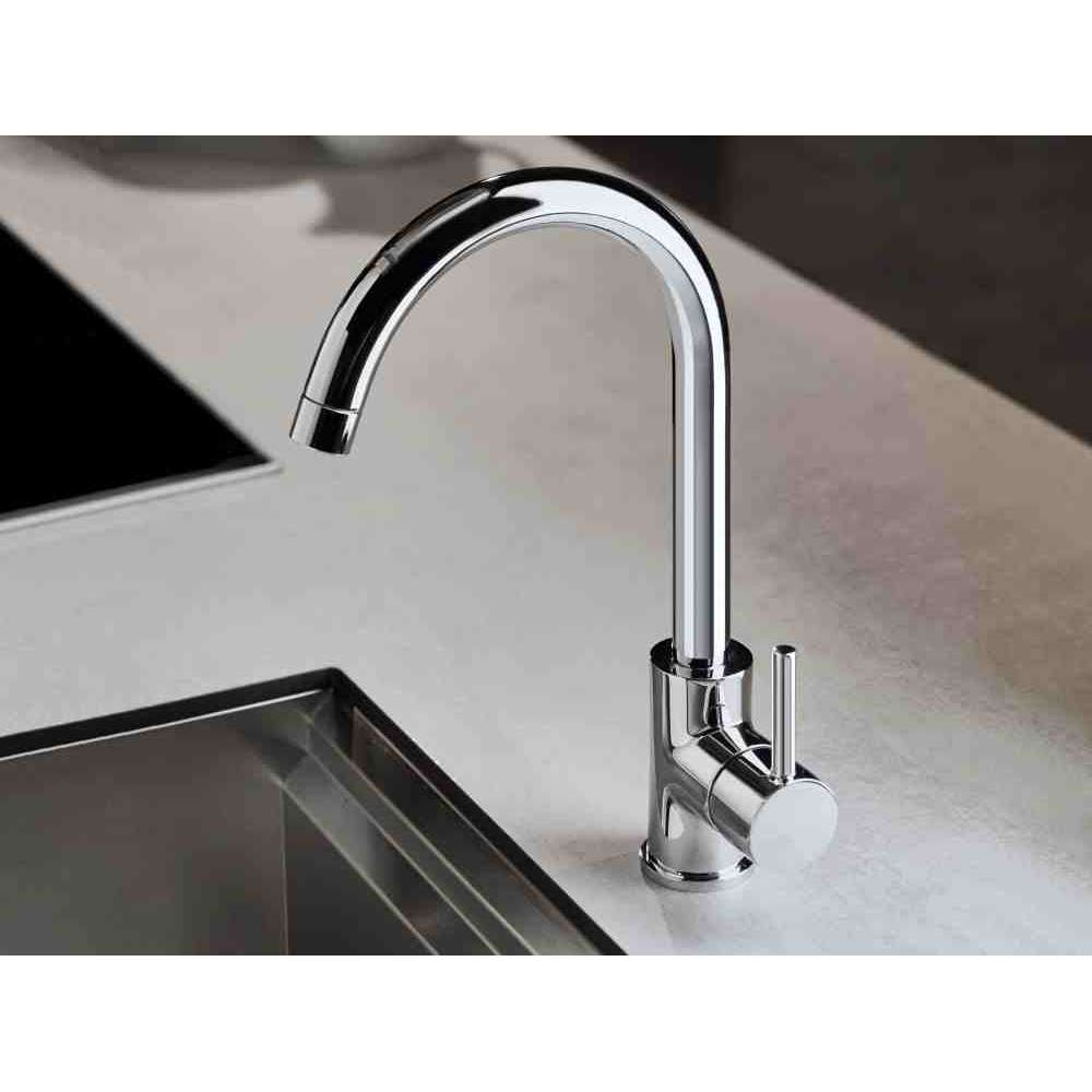 Zobacz większe Metalowa bateria kuchenna w stylu nowoczesnym z obrotową wylewką i wyciąganą końcówką natryskową Ritmonio REVERSO