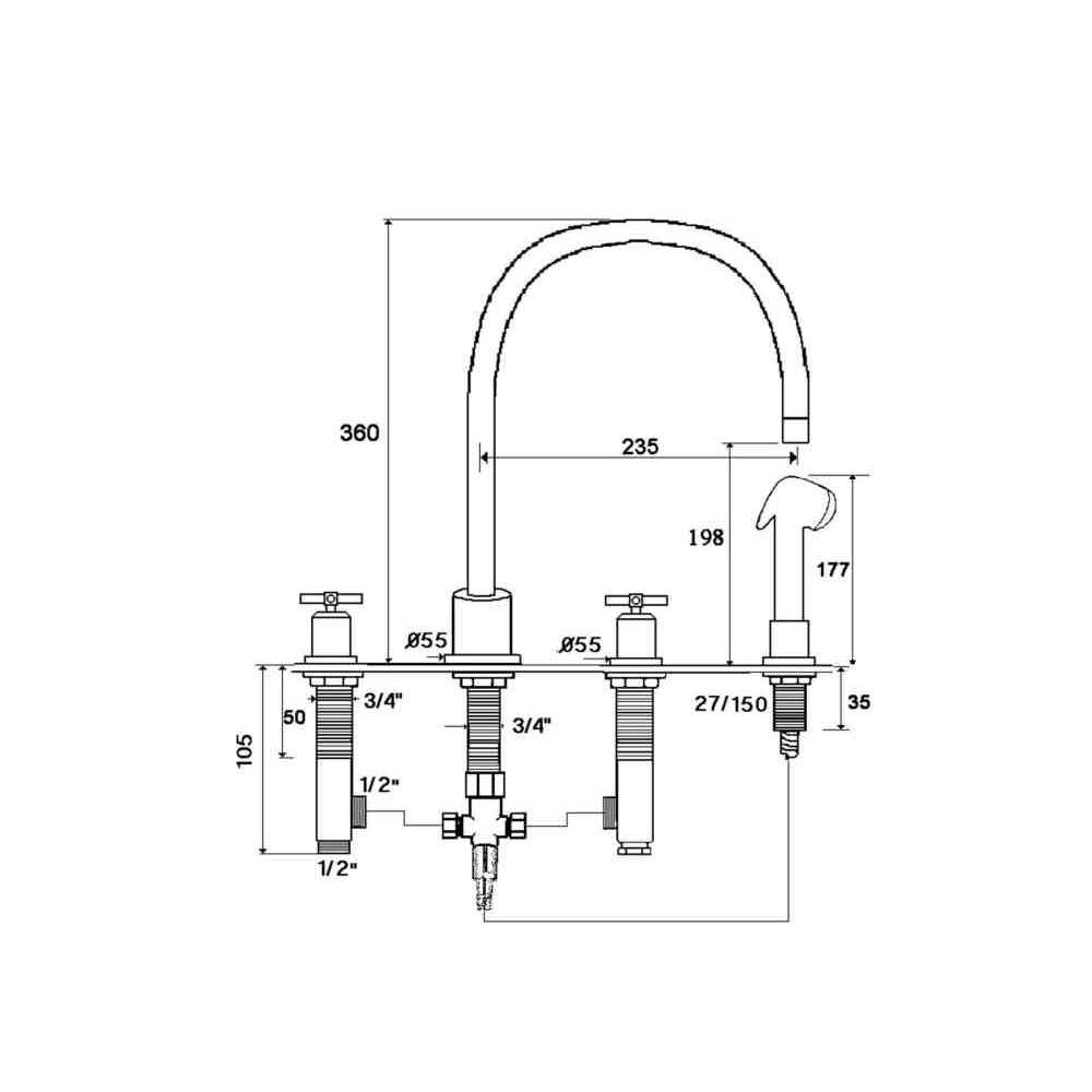 Bateria kuchenna nablatowa z wyciąganą wylewką prysznicową RVB Sully