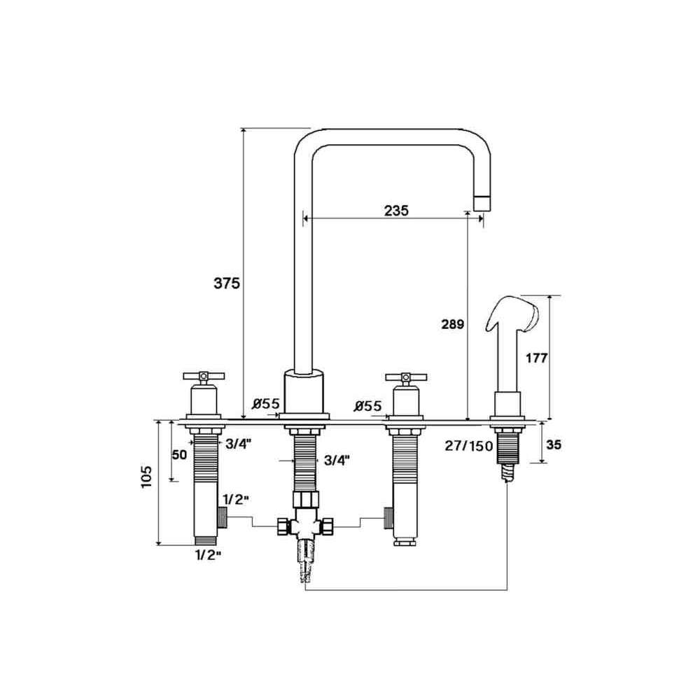 Bateria kuchenna nablatowa, natryskowa RVB Sully