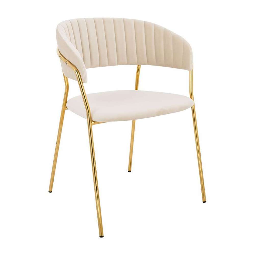 Krzesło MARGO beżowe - welur, podstawa złota. Solidna podstawa w połyskującym, złotym wykończeniu wprowadza do projektu nutę luksusu i doskonale współgra z tapicerką w eleganckim, beżowym odcieniu. Miękkie siedzisko i oparcie pokryte aksamitnym welurem zapewniają wyjątkowy komfort oraz wyróżniają się delikatnym, szlachetnym połyskiem. Subtelne pionowe przeszycia dodają całości lekkości i podkreślają wysmakowaną formę krzesła. Doskonale sprawdzi się zarówno w aranżacjach klasycznych, jak i tych inspirowanych stylem glamour, wnosząc do przestrzeni elegancję i ponadczasowy wdzięk. Solidne wykonanie gwarantuje trwałość i stabilność przy obciążeniu do 130 kg. Poznaj kolekcję Margo i wybierz wersję idealnie dopasowaną do Twojego gustu. Wymiary: wys. 78 cm / szer. 57 cm / gł. 50 cm Wysokość do krawędzi siedziska: 47 cm Wysokość do podłokietników: 70 cm Siedzisko: szer. 48 cm / gł. 45 cm Oparcie: wys. 34 cm Waga netto: 5,5 kg Wymiary opakowania: 78,5 cm / 58,5 cm / 63 cm.
