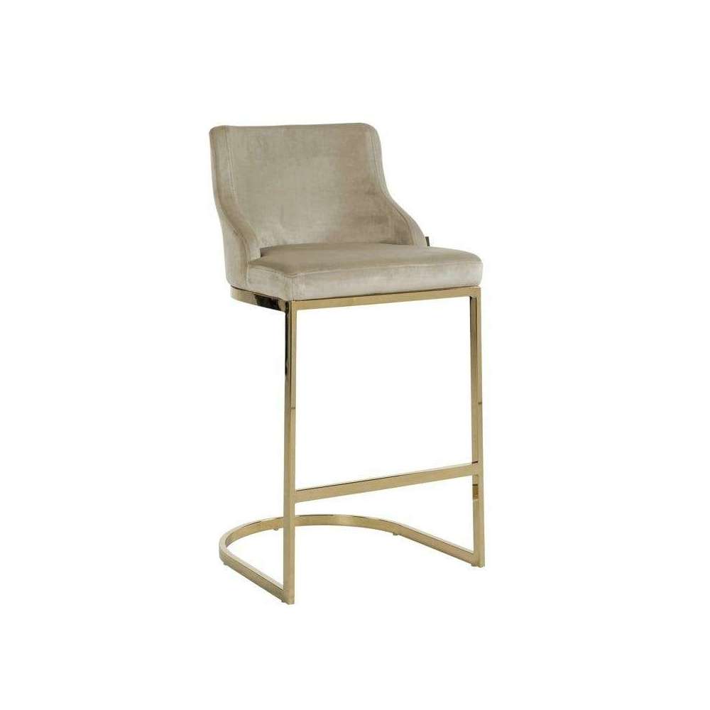 RICHMOND krzesło barowe BOLTON 75 khaki - welur, złota podstawa