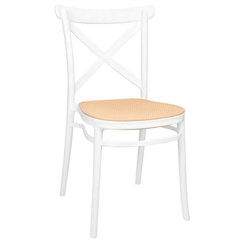 Krzesło COUNTRY białe. Zaprojektowane na wzór klasycznego krzesła z ogrodowym akcentem. Ażurowe siedzisko przypominające rattan i skrzyżowane oparcie powodują, że krzesło nabiera lekkości. Ponadczasowe połączenie prostoty i podmiejskiego stylu kojarzy się z latem i wolnym czasem. Możliwość sztaplowania jest świetnym rozwiązaniem, aby zaoszczędzić przestrzeń i pozwala na praktyczne przechowywanie produktu. Krzesło w całości wykonane jest z polipropylenu. Wymiary: wys. 87 cm / szer. 40,5 cm / gł. 51,5 cm Wysokość do krawędzi siedziska: 46 cm Siedzisko: szer. 40,5 cm / gł. 41,5 cm Oparcie: wys. 42 cm / szer. 46,5 cm Rozstaw nóg: przód szer. 44 cm / tył. szer. 40 cm / gł. 44,5 cm / wys. 43 cm Wysokość do listwy pod siedzeniem: 35 cm Listwa pod siedzeniem: szer. 2 cm Możliwość sztaplowania: tak Wymiary opakowania: 50 cm / 69 cm / 121 cm.