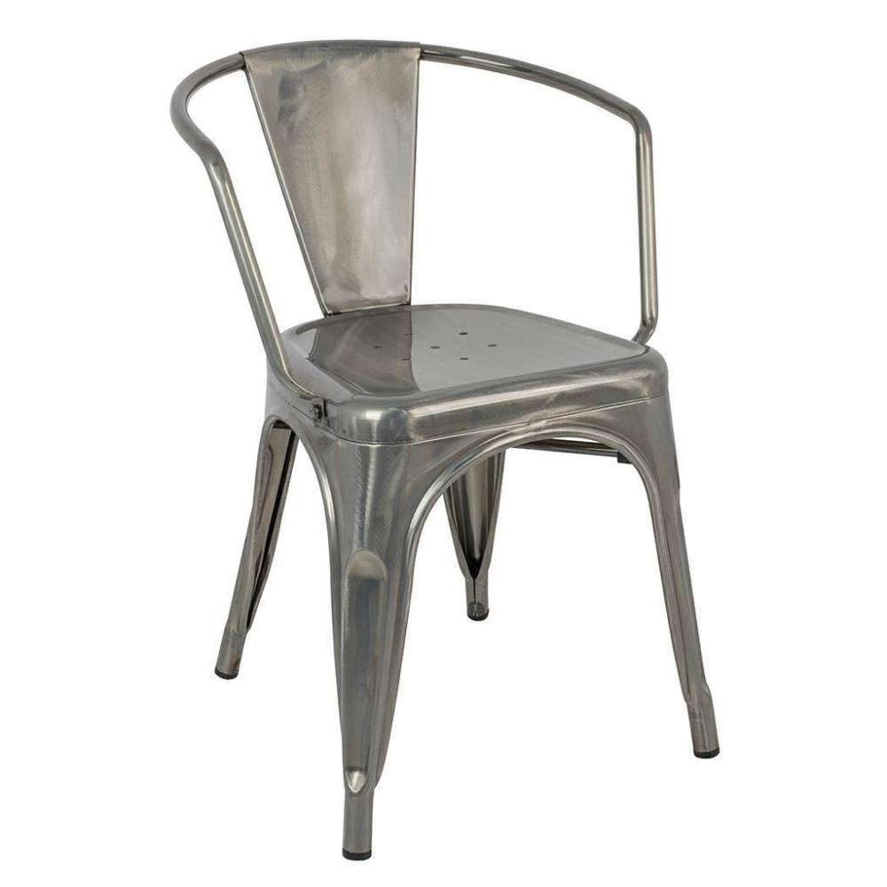 Krzesło TOWER ARM (Paris) - metal. Harmonia designu, wygody i trwałości. Wykonane w całości z lakierowanego metalu, zachwyca nowoczesnym wyglądem, trwałością i funkcjonalnością. Elegancki, stalowo - szary odcień nadaje nowoczesny charakter i ponadczasową elegancję. Minimalistyczna forma połączona z subtelną elegancją sprawia, że krzesło znakomicie odnajduje się w każdej aranżacji, od klasycznej po loftową i industrialną. Doskonale sprawdzi się zarówno w domowych wnętrzach, jak i w przestrzeniach komercyjnych, kawiarniach, restauracjach czy biurach. To propozycja dla osób ceniących design, który łączy prostotę formy z ponadczasową estetyką. Wymiary: wys. 72,5 cm / szer. 52 cm / gł. 54 cm Wysokość do krawędzi siedziska: 46 cm Wysokość do podłokietników: 70 cm Podłokietniki: dł. 18 cm / szer. 2 cm Siedzisko: szer. 37 cm / gł. 37 cm Oparcie: wys. 31,5 cm / szer. 23 cm Rozstaw nóg przód szer. 45 cm / tył szer. 39 cm / gł. 47 cm Wymiary opakowania: 55 cm / 53 cm / 113 cm.