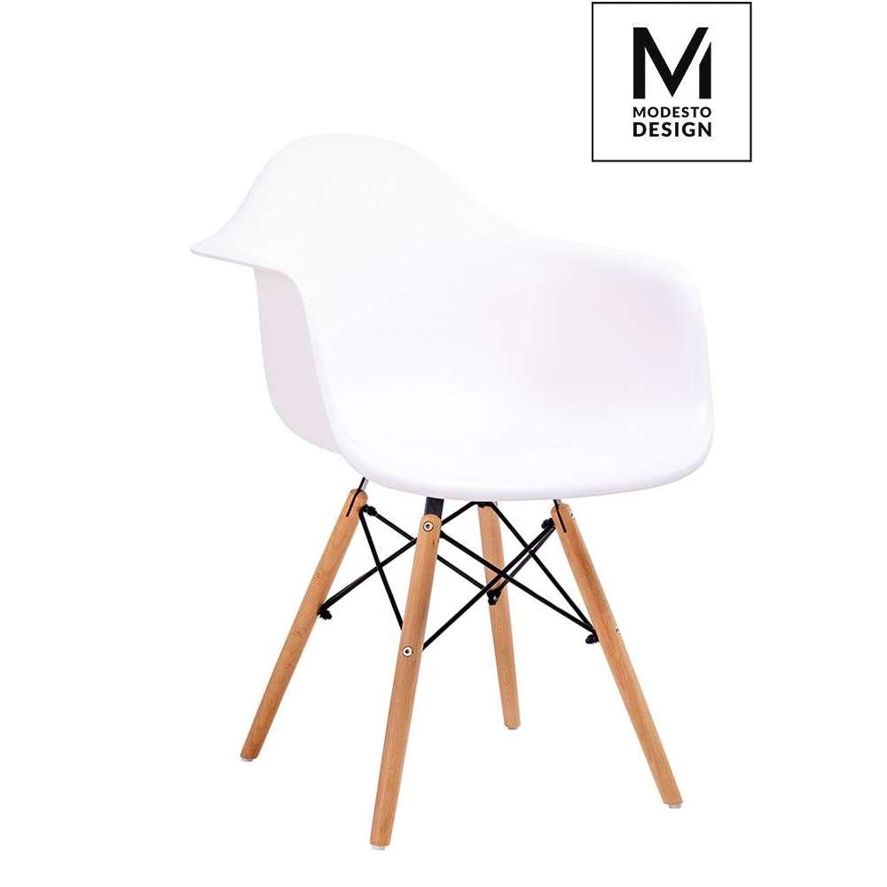 MODESTO fotel DAW DSW biały - polipropylen, nogi bukowe