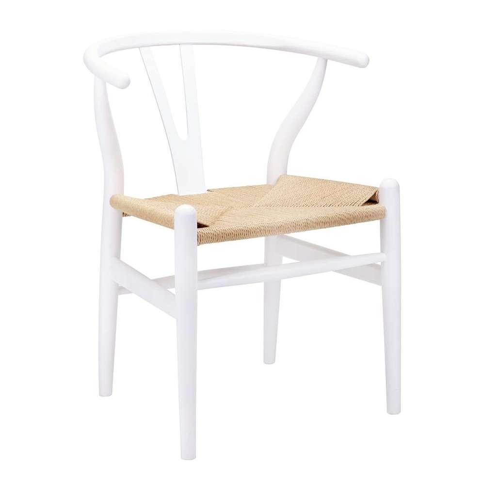 Krzesło Wishbone białe - drewno bukowe | naturalne włókno