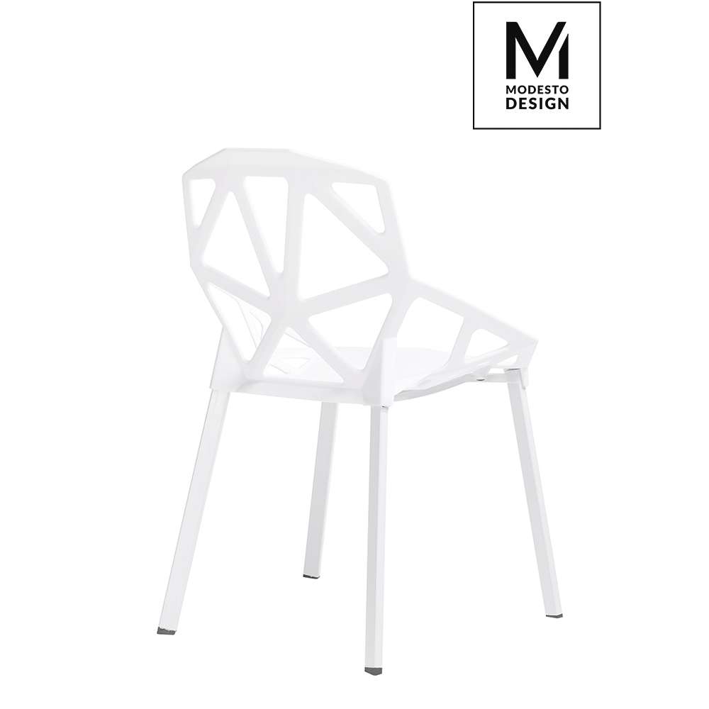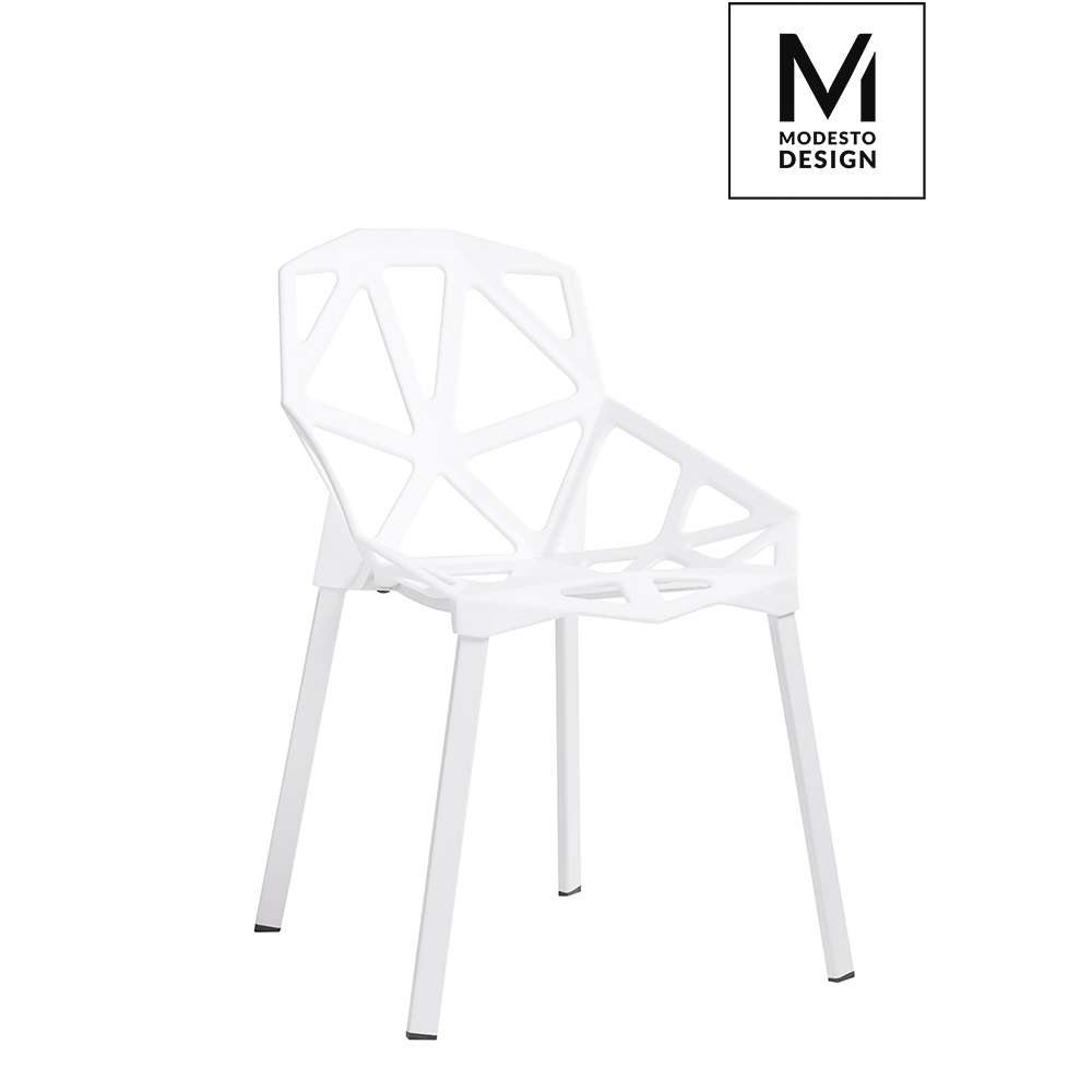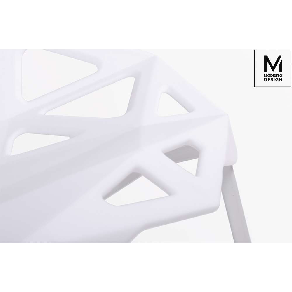 MAT krzesło SPLIT marka MODESTO DESIGN. Siedzenie i oparcie jest wykonane z polipropylenu biały mat. Podstawa wykonana jest z metalu, lakierowane biały kolor. ciężar opakowania: 6 kg. Maksymalna liczba elementów. Pojemnik: 4. Sposób dostarczania Produkt pakiet do samodzielnego montażu: TakWymiar opakowanie 69 cm x 57 cm x 60 cm