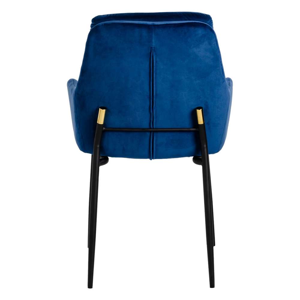 Grant krzesło w kolorze granatowym. Siedzisko i oparcie tapicerowane miękkie i przyjemne w dotyku weluru. Struktura metalowa w kolorze czarnym satynowe wykończenie. Ciekawym elementem dekoracyjnym jest złoty koniec oparcia konstrukcji. Podkreśla komfort miękki fotel w harmonii z ozdobnymi poduszkami na plecach. Krzesło doskonale odnaleźć w jadalni, salonu i biura mieszka. Wysokość tyłu: 43 cm Głębokość siedziska: 44 cm Waga netto 1 szt. 7,8 kg. Waga z opakowaniem: 16,3 kg. Opakowaniowe o wymiarach 78 cm x 59 cm x 66 cm. Maksymalna liczba elementów. Pojemnik: Sposób wysyłki 2: Pakiet Kombinacja produkt: Brak