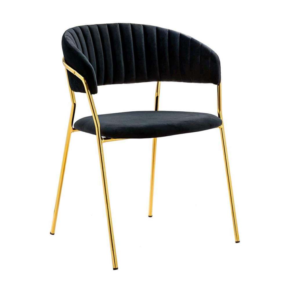 Margo krzesło w kolorze czarnym. Siedzisko i oparcie tapicerowane miękkie i przyjemne w dotyku weluru. Struktura metalu w kolorze złota, błyszcząca. Margo jest idealnym połączeniem modnej tkaniny ze złota. Pionowe szwy na plecach dodaje elegancji. Krzesło idealnie dopasowane wnętrza nowoczesne i klasyczne. Waga netto 1 szt. 5,5 kg. Pakiet 7 kg masy ciała. Wymiary opakowania: 78,5 cm x 58,5 cm x 63 cm. Maksymalna liczba elementów. Pojemnik: Sposób wysyłki 2: Pakiet Kombinacja Produkt Tak