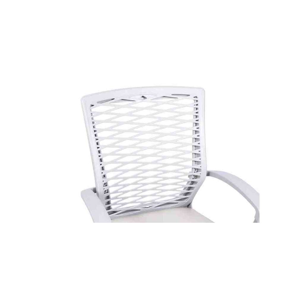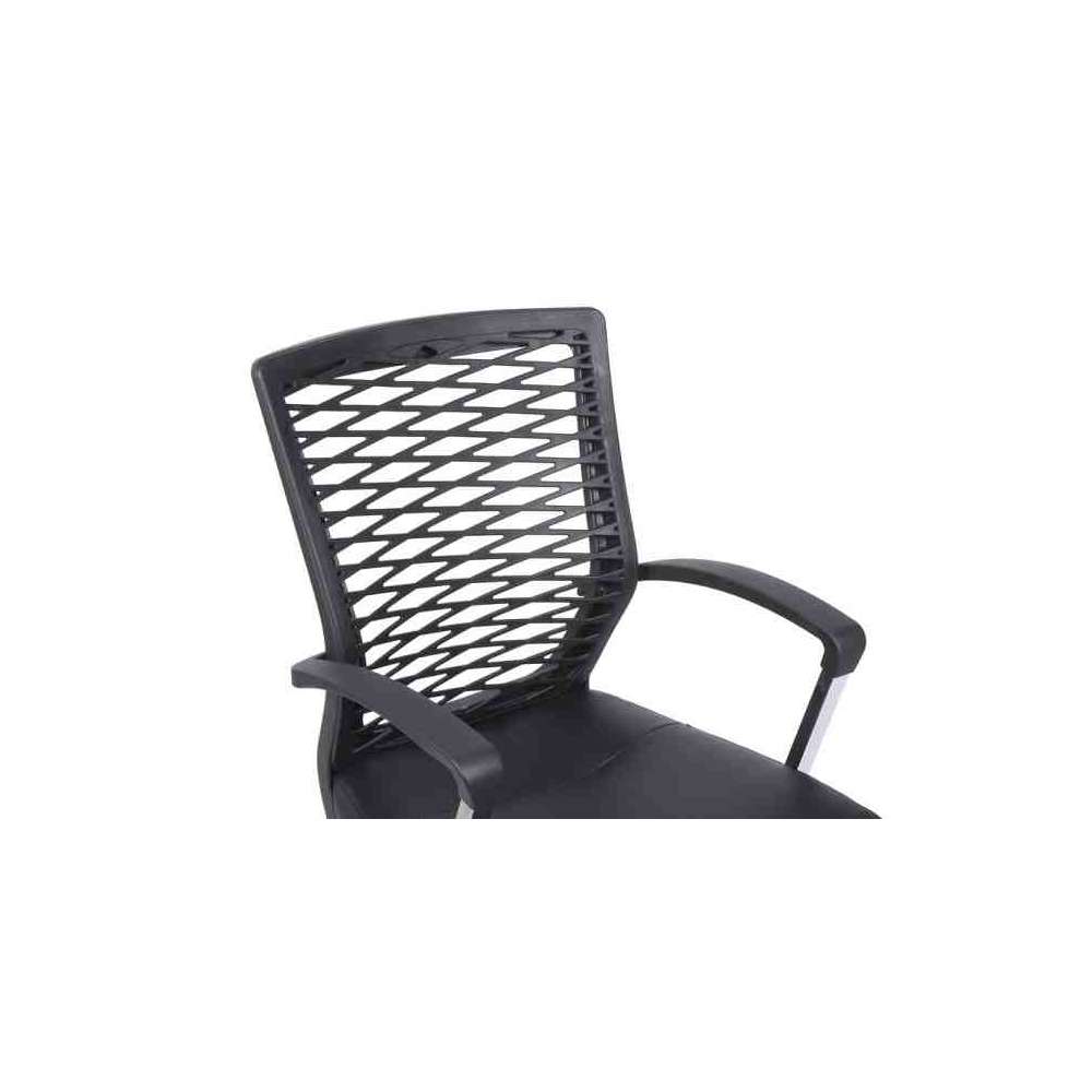 Active to ergonomiczne krzesło biurowe z szaro-czarnym siedziskiem z eko-skóry, siatkowym oparciem i chromowaną metalową podstawą. Fotel posiada regulowaną wysokość siedziska oraz funkcję bujania z blokadą.