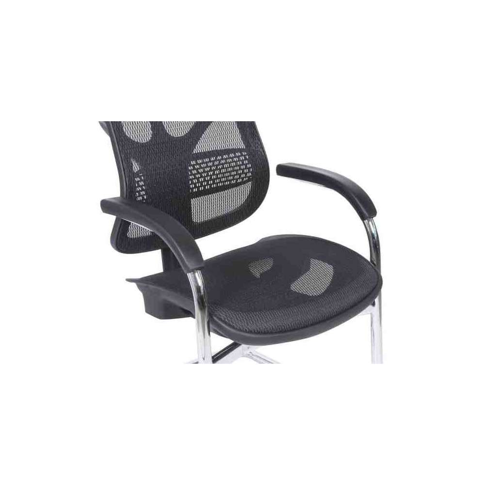 Ergo 650 to ergonomiczne krzesło biurowe z przewiewnej siatki w kolorach czarnym, szarym, czerwonym i zielonym, z podłokietnikami z PVC i chromowaną metalową podstawą. Fotel posiada oparcie z regulacją wysokości.