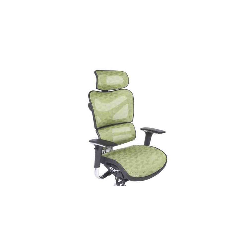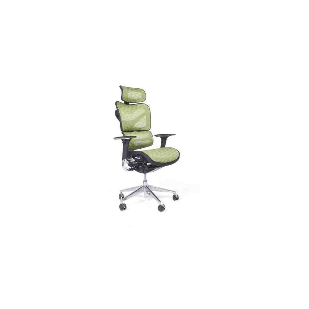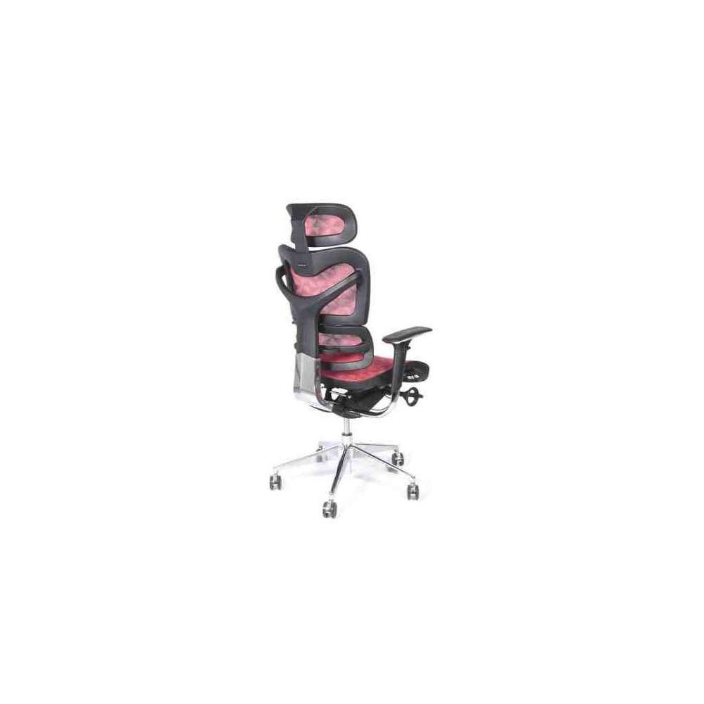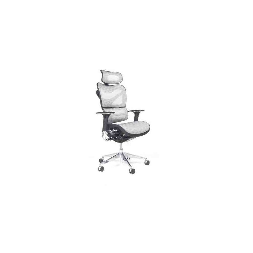 Ergo 700 to ergonomiczne krzesło biurowe z siedziskiem i oparciem z przewiewnej siatki w kolorach czerwonym, szarym, białym, zielonym i czarnym, z podłokietnikami z PVC i chromowaną metalową podstawą. Fotel posiada siedzisko, zagłówek, podłokietniki z regulacją wysokości, siedzisko z regulacją głębokości, kąt nachylenia oparcia, regulowany zagłówek i podłokietniki, funkcję bujania z blokadą.
