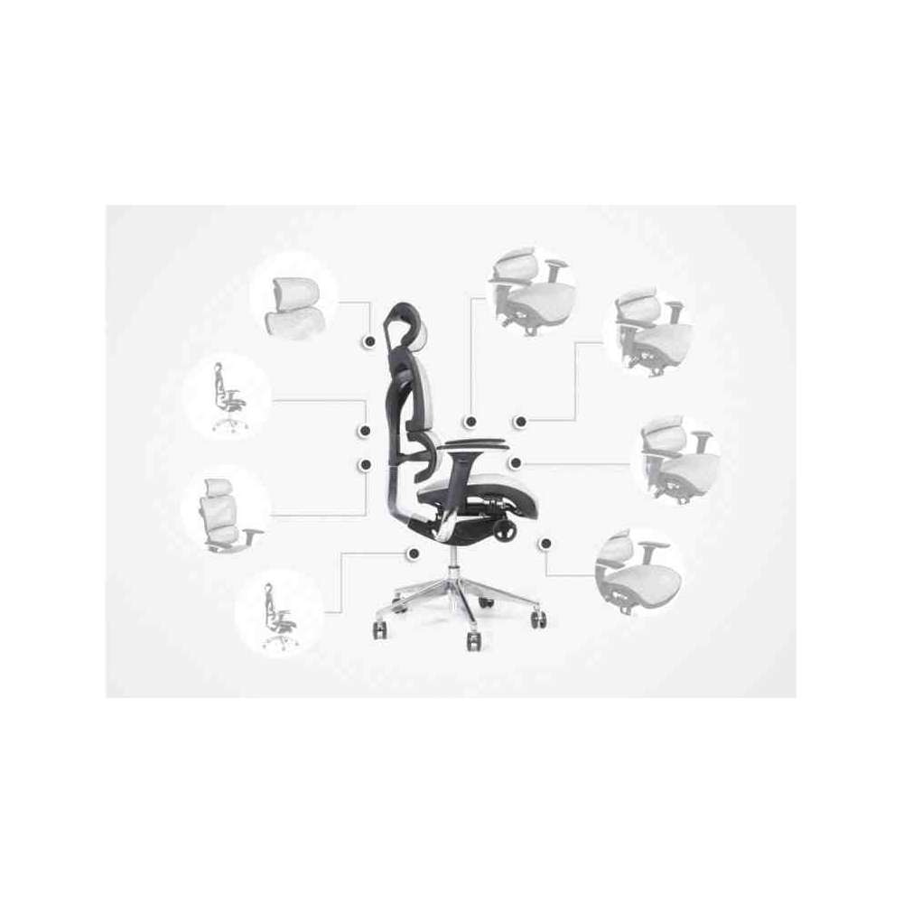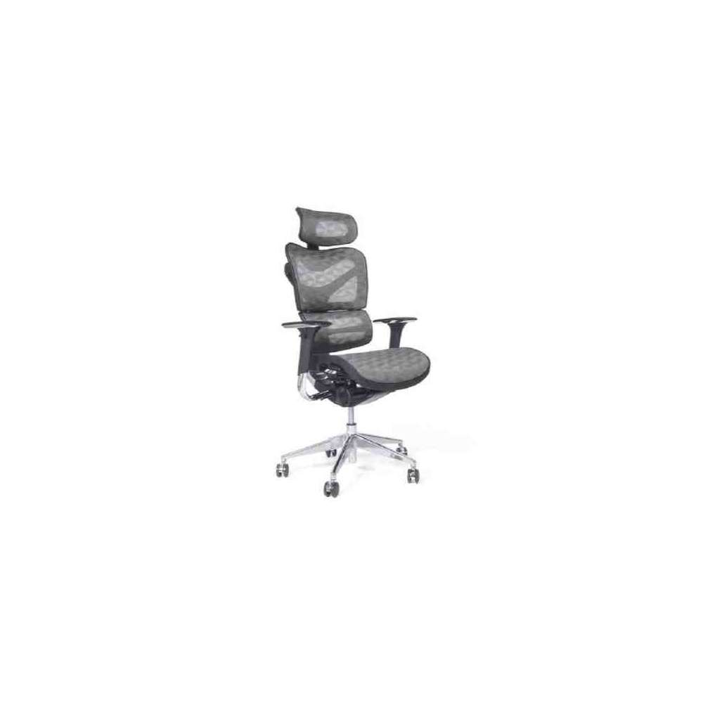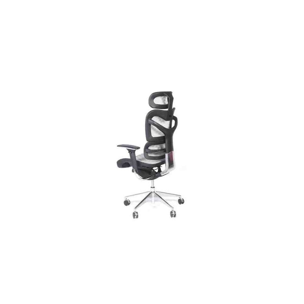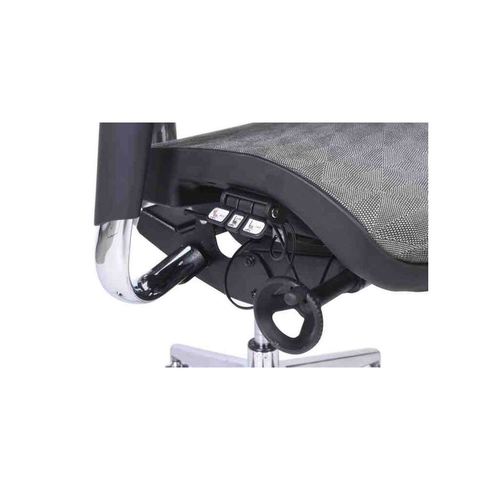 Ergo 700 to ergonomiczne krzesło biurowe z siedziskiem i oparciem z przewiewnej siatki w kolorach czerwonym, szarym, białym, zielonym i czarnym, z podłokietnikami z PVC i chromowaną metalową podstawą. Fotel posiada siedzisko, zagłówek, podłokietniki z regulacją wysokości, siedzisko z regulacją głębokości, kąt nachylenia oparcia, regulowany zagłówek i podłokietniki, funkcję bujania z blokadą.