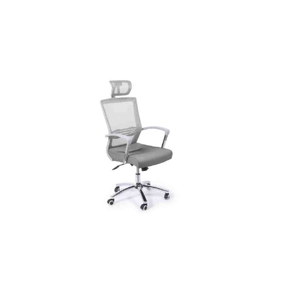 Mesh to ergonomiczne krzesło biurowe z oddychającym oparciem z siatki w kolorze czarnym, szarym i brązowym, siedziskiem z ekoskóry i chromowaną metalową podstawą. Wyposażony w regulowane na wysokość siedzisko, zagłówek o regulowanej wysokości i pochyleniu, blokowaną funkcję bujania.