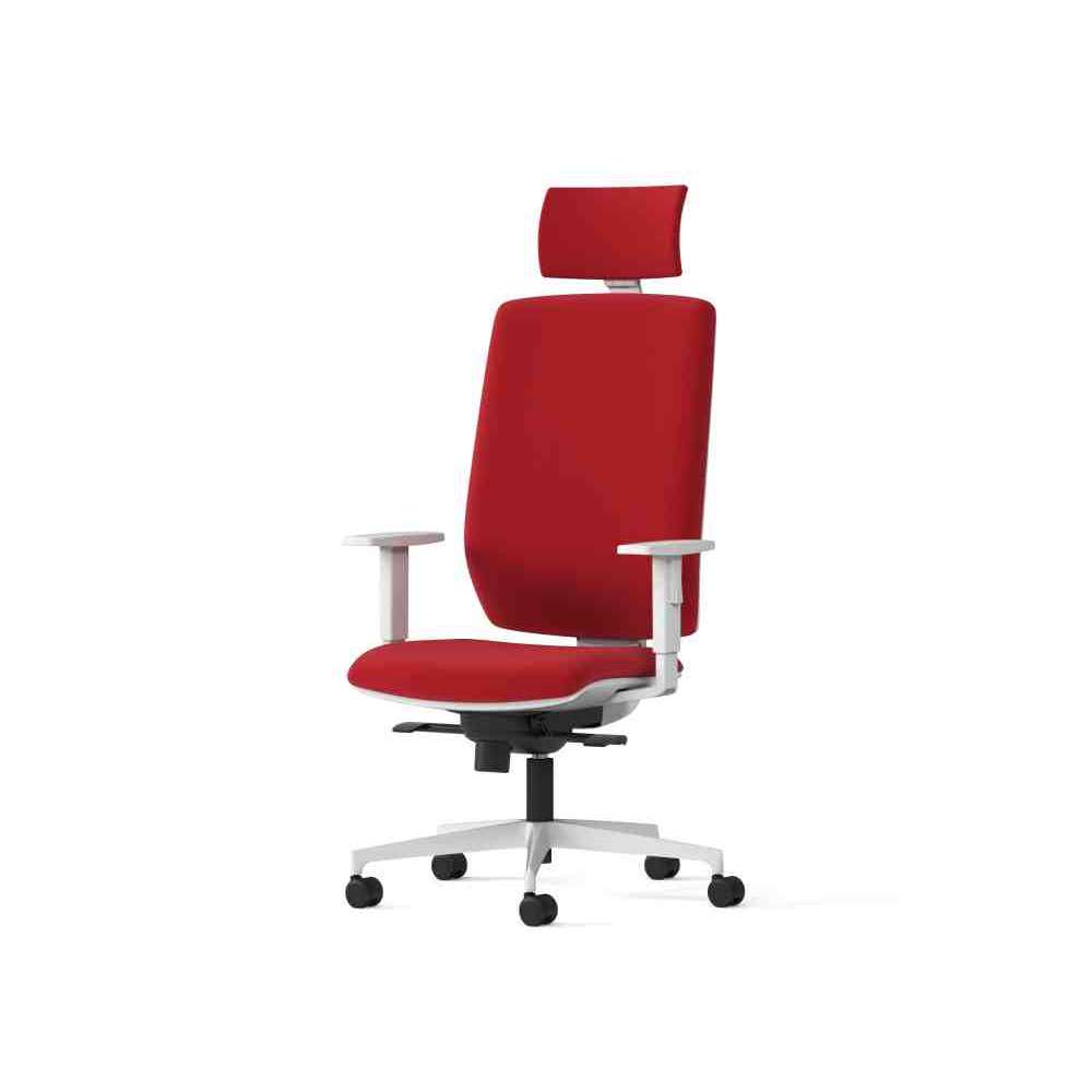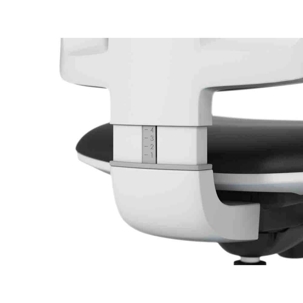 b) MIRAI BIAŁY || Fotel zadaniowy, oparcie maxi z systemem góra-dół, zagłówek z regulacją wysokości, mechanizm synchroniczny, biała podstawa i skorupa zewnętrzna. Podłokietniki z białego polipropylenu z regulacją wysokości.