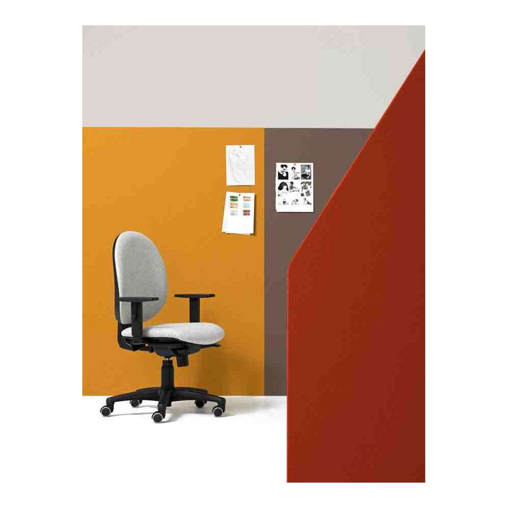 Mechanizm jest minisynchroniczny, z 2 dźwigniami, jedną do regulacji podnośnika, drugą do odchylania oparcia, blokowany w 4 pozycjach, z mechanizmem antishock i dźwignią regulacji ciężaru. Podstawa jest dostępna z czarnego lub szarego nylonu lub z polerowanego aluminium z gumowymi i samohamującymi się kółkami. Ramiona stałe czarne lub szare z polipropylenu lub regulowane 1d czarne lub szare (wysokość) lub 3d czarne (wysokość, głębokość, obrót).