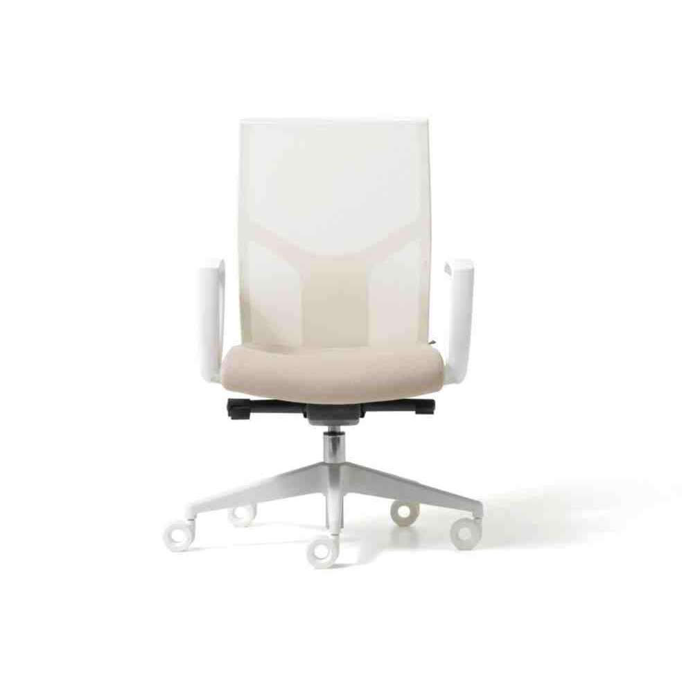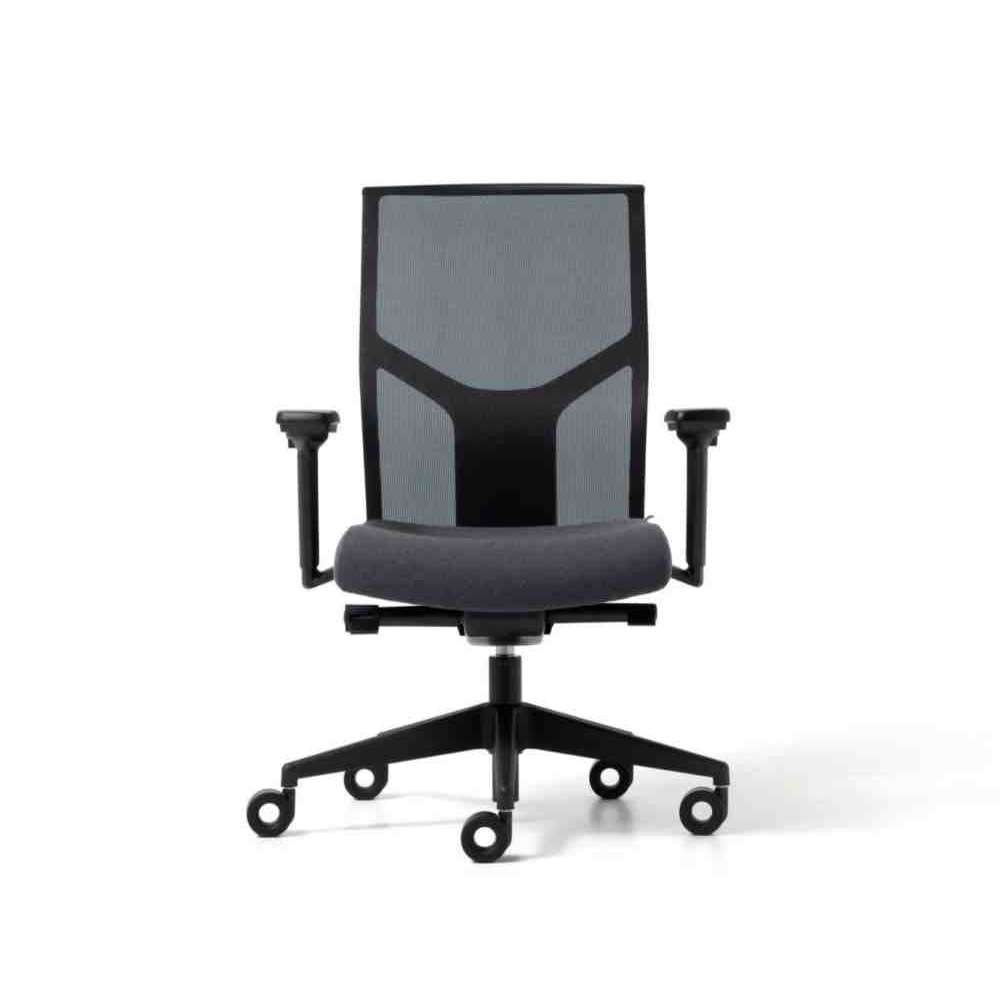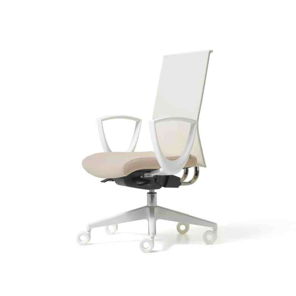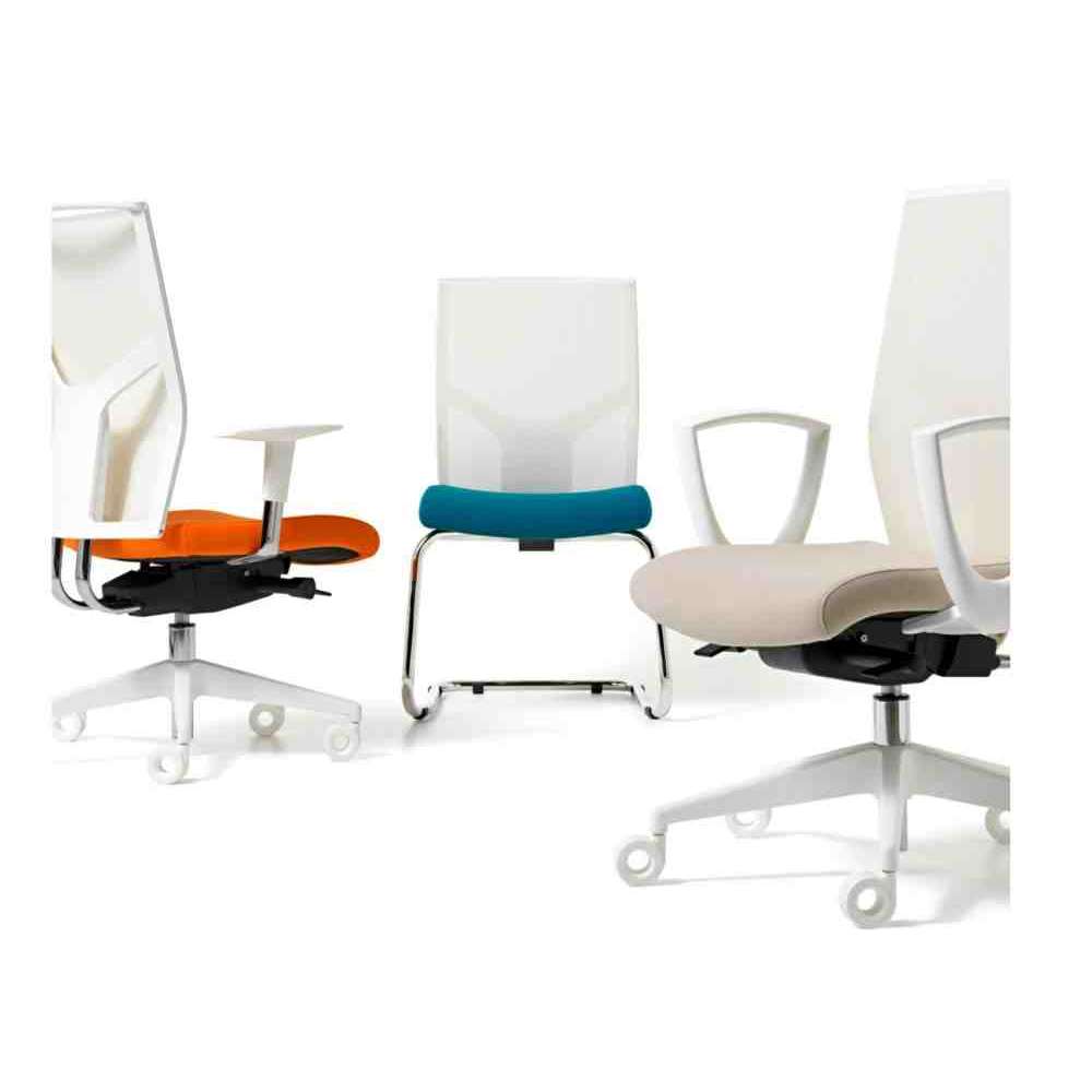 Fit to fotel obrotowy z możliwością wyboru oparcia: czarna lub biała siatka; polipropylen czarny lub biały; całkowicie tapicerowane tkaniną termoformowaną. Regulacja wysokości z chromowanym ruchem zintegrowanym podparciem lędźwiowym. W pełni tapicerowane siedzisko elastyczną pianką poliuretanową. Jego mechanizm synchronizacji zapewnia regulację gazową i pochylenie oparcia, blokowane w pięciu pozycjach, z mechanizmem przeciwwstrząsowym i regulacją masy ciała. Podstawa z czarnego lub białego nylonu lub polerowanego aluminium. Trzy rodzaje podłokietników: stały; regulowana wysokość (1d); regulacja wysokości i głębokości z obrotem (3d). Wyposażenie opcjonalne: zagłówek, system przesuwny do regulacji głębokości siedziska, kółka z otworami.