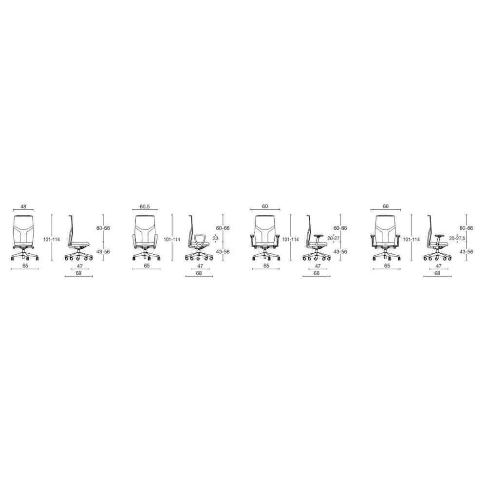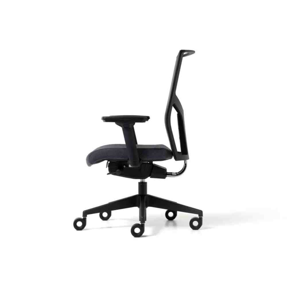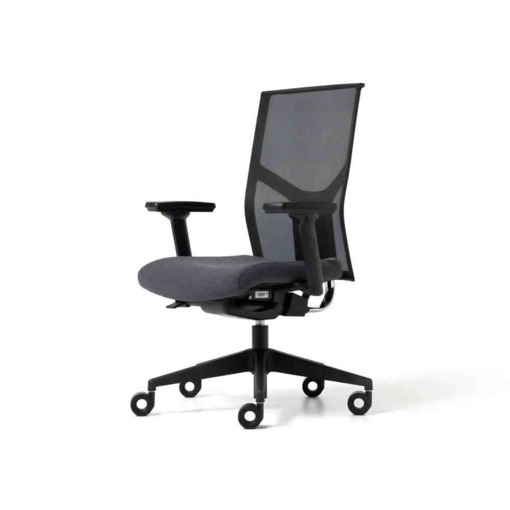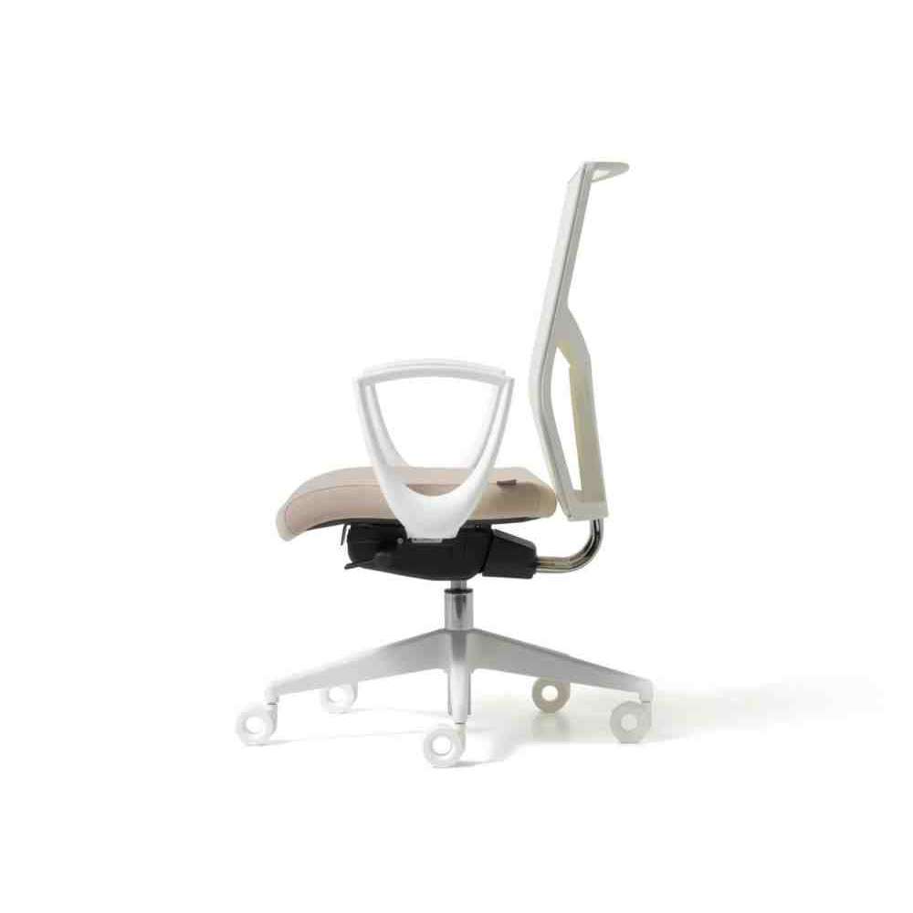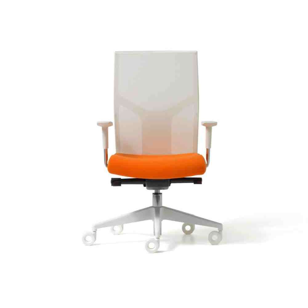 Fit to fotel obrotowy z możliwością wyboru oparcia: czarna lub biała siatka; polipropylen czarny lub biały; całkowicie tapicerowane tkaniną termoformowaną. Regulacja wysokości z chromowanym ruchem zintegrowanym podparciem lędźwiowym. W pełni tapicerowane siedzisko elastyczną pianką poliuretanową. Jego mechanizm synchronizacji zapewnia regulację gazową i pochylenie oparcia, blokowane w pięciu pozycjach, z mechanizmem przeciwwstrząsowym i regulacją masy ciała. Podstawa z czarnego lub białego nylonu lub polerowanego aluminium. Trzy rodzaje podłokietników: stały; regulowana wysokość (1d); regulacja wysokości i głębokości z obrotem (3d). Wyposażenie opcjonalne: zagłówek, system przesuwny do regulacji głębokości siedziska, kółka z otworami.