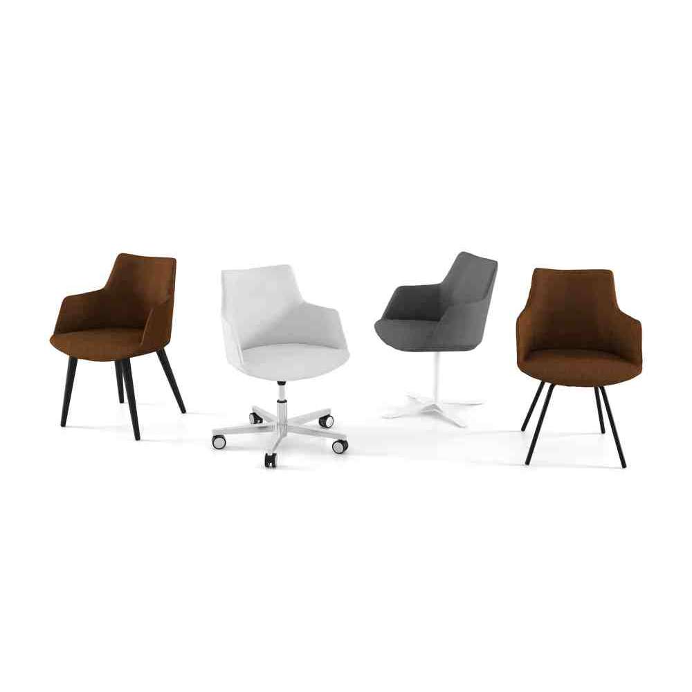 Obejmujące i delikatnie wyprofilowane siedzisko, złożone z zimnej, spienionej skorupy i metalowej konstrukcji z czterema nogami. Szwy z tyłu nadają mu gładką linię. Divina może być ubrana w skórę lub tkaninę.