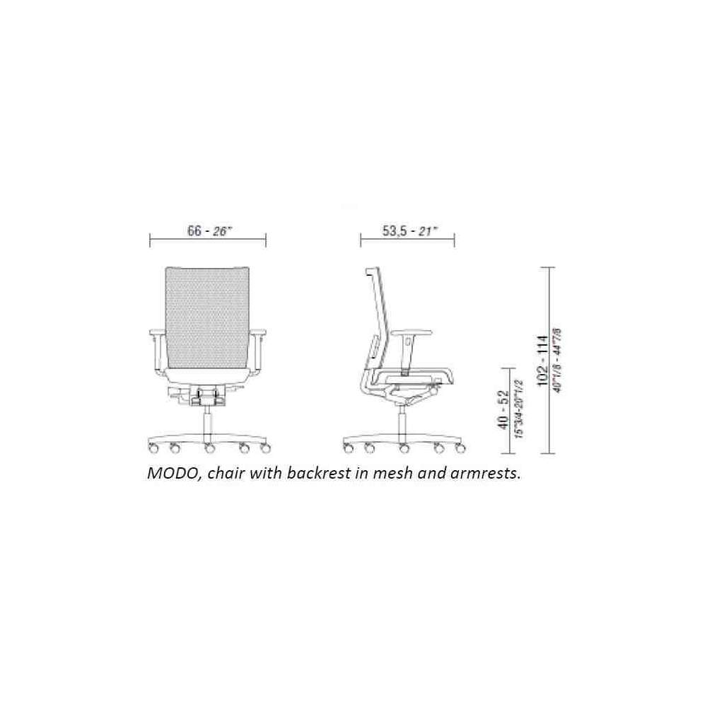 To nowe ergonomiczne krzesło zaprojektowane przez Baldanzi i Novelli to idealne połączenie oryginalnego designu i mechanicznej innowacji. Krzesło Modo wyposażone jest w najnowszej generacji zsynchronizowany mechanizm regulacji naciągu i głębokości siedziska. Posiada również podłokietniki z regulacją wysokości, szerokości i promienia oraz podparcie lędźwiowe z regulacją wysokości. poziom komfortu. Jego solidna konstrukcja została zaprojektowana zgodnie z międzynarodowymi normami bezpieczeństwa. Wszystkie komponenty nadają się do recyklingu.