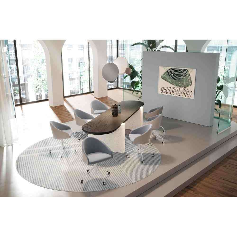 Niezbędny projekt, który doskonale równoważy formę, funkcjonalność i wygodę. KAMEO Swivel to nowy 4-gwiazdkowy fotel obrotowy z kółkami i podnośnikiem gazowym, który oferuje przyjemne proporcje w połączeniu ze współczesną estetyką, która pasuje do przyjaznych i dynamicznych wnętrz.