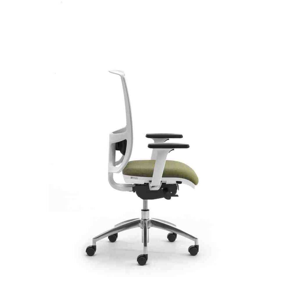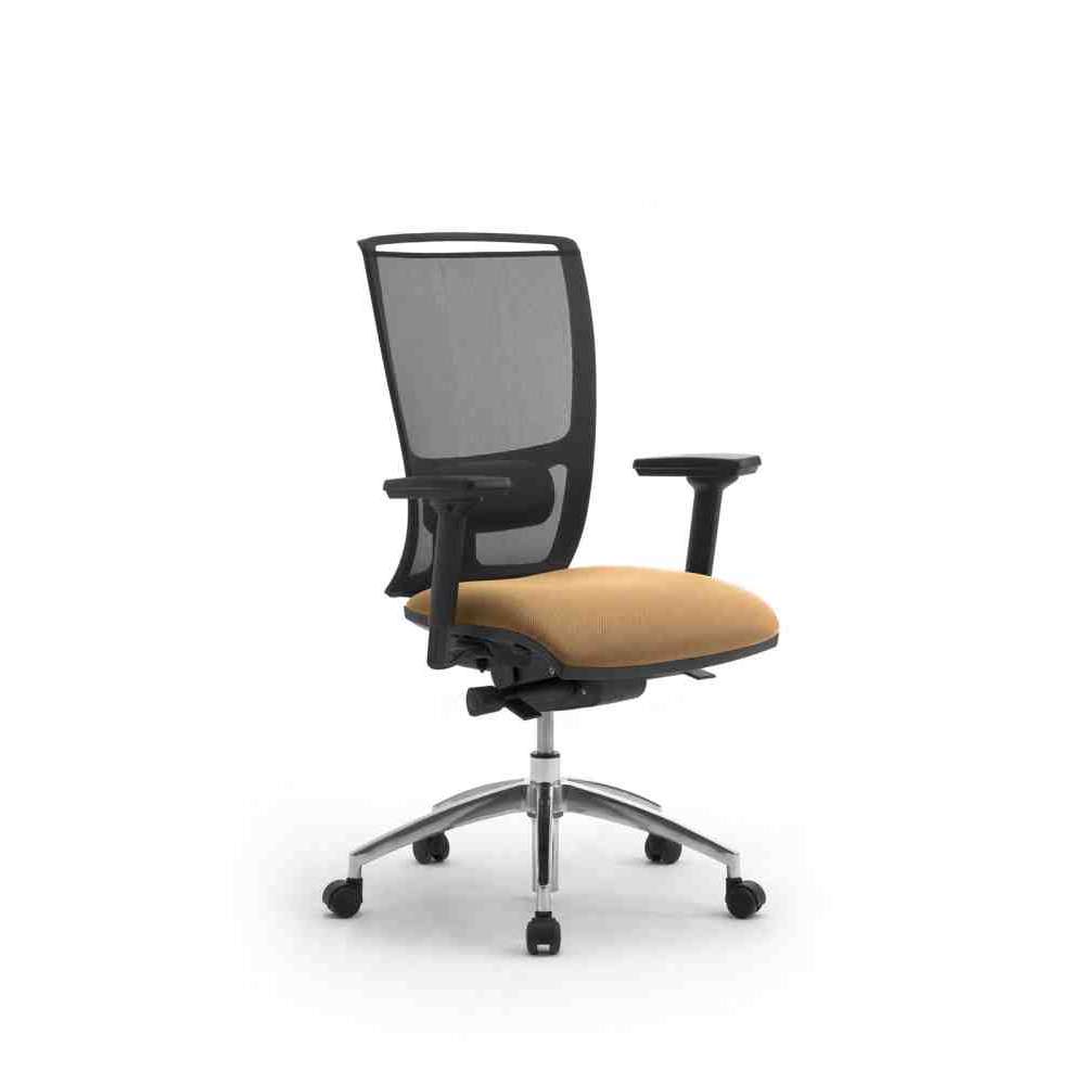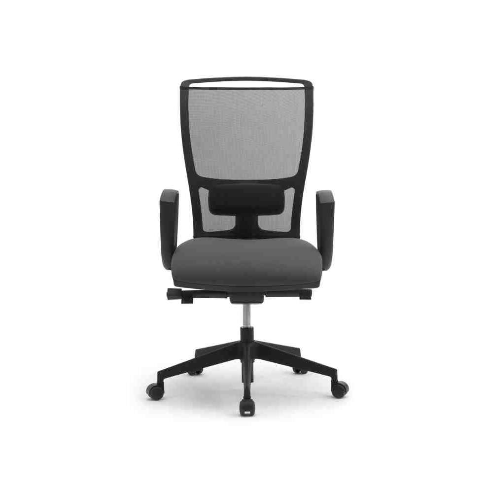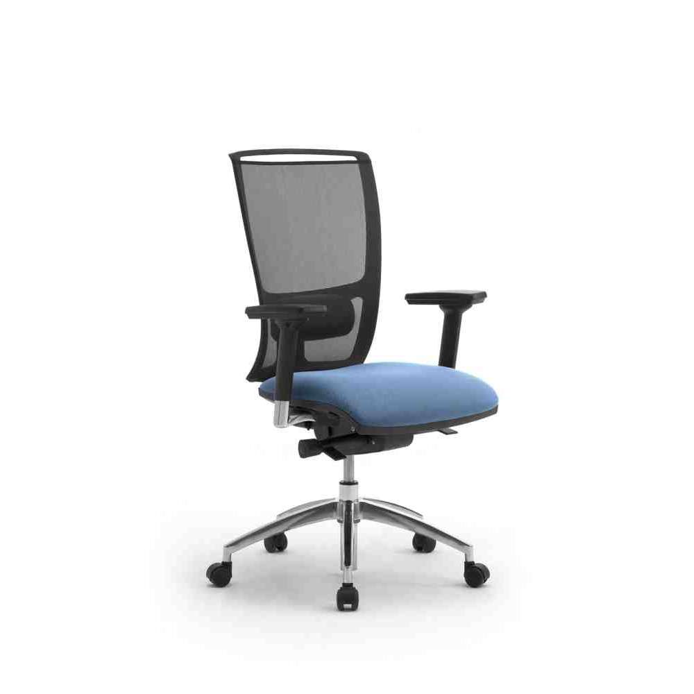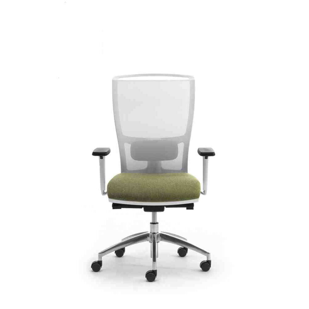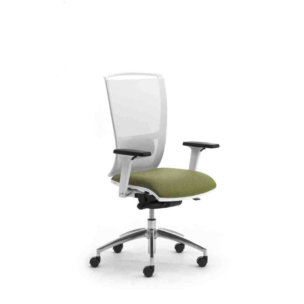 Zsynchronizowany mechanizm przechylania + przesuwane siedzenie. Oparcie z siatki o regulowanej wysokości ze zintegrowaną regulacją podparcia lędźwiowego. Kolory oczek: czarny, szary i biały. Podstawa z polerowanego aluminium lub czarnego nylonu. Samohamowne kółka z nylonu. 3-D (wysokość, szerokość, obrót) lub 4-D (+ regulacja szerokości) lub stałe ramiona z pętlą z miękkimi nakładkami lub stałe ramiona PP. Opcjonalnie regulowany zagłówek. Rama wspornikowa dla gości z podłokietnikami.