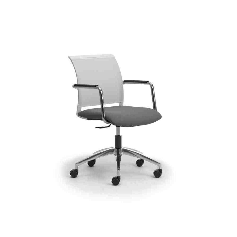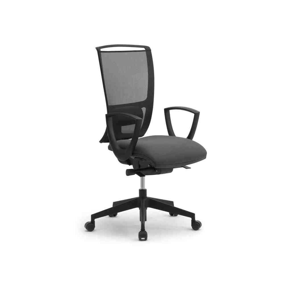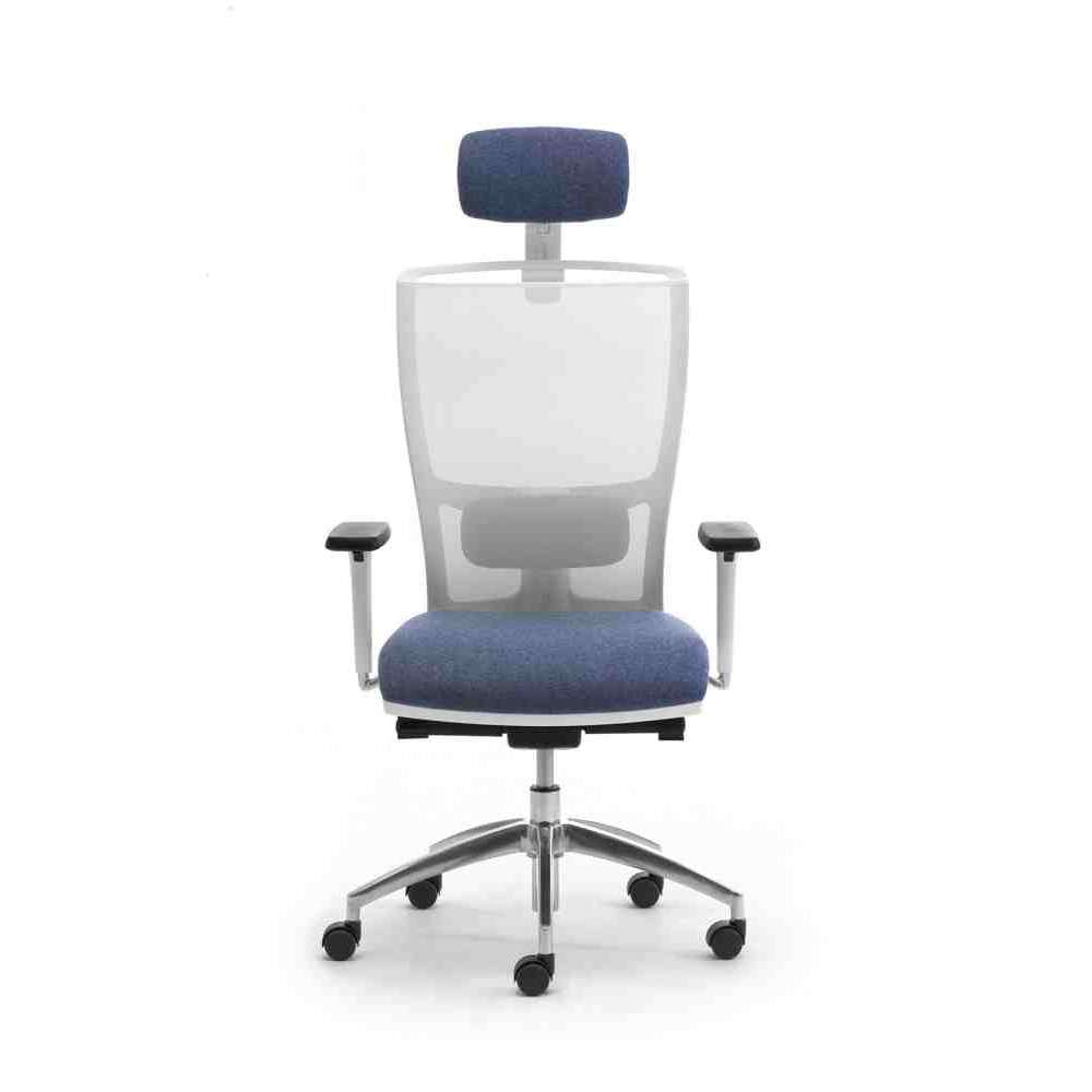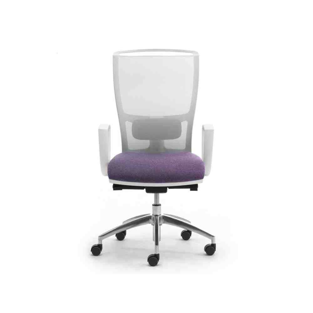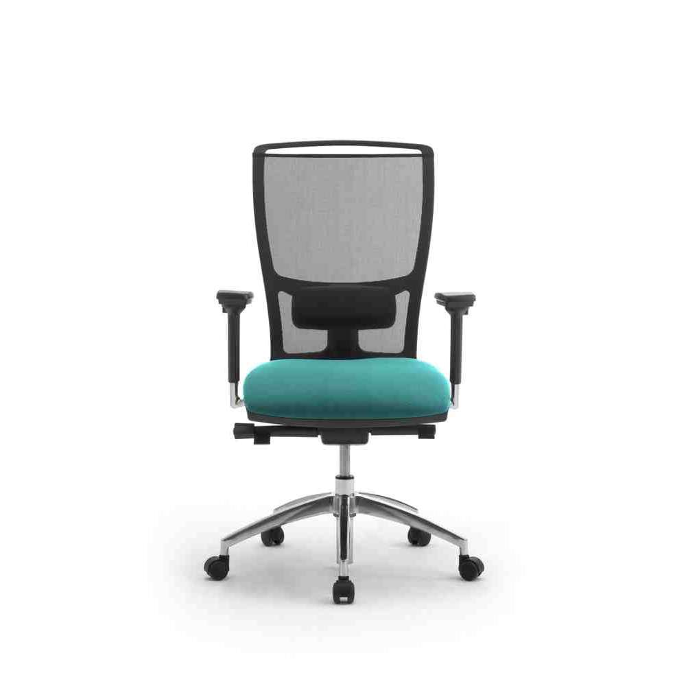 Zsynchronizowany mechanizm przechylania + przesuwane siedzenie. Oparcie z siatki o regulowanej wysokości ze zintegrowaną regulacją podparcia lędźwiowego. Kolory oczek: czarny, szary i biały. Podstawa z polerowanego aluminium lub czarnego nylonu. Samohamowne kółka z nylonu. 3-D (wysokość, szerokość, obrót) lub 4-D (+ regulacja szerokości) lub stałe ramiona z pętlą z miękkimi nakładkami lub stałe ramiona PP. Opcjonalnie regulowany zagłówek. Rama wspornikowa dla gości z podłokietnikami.