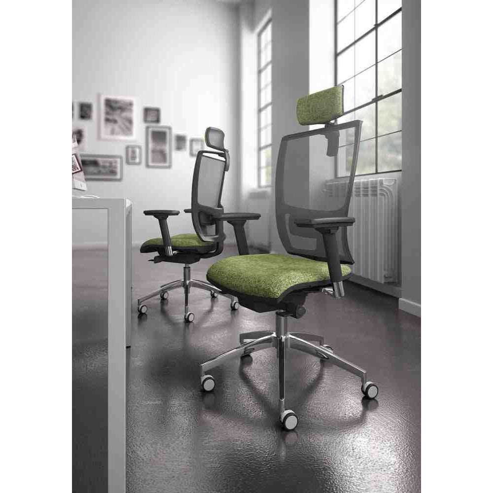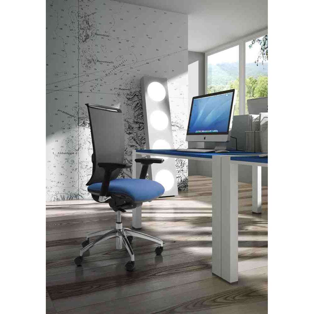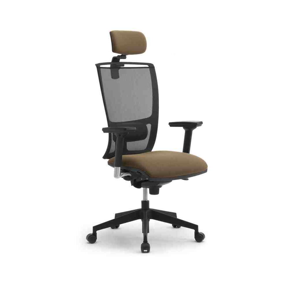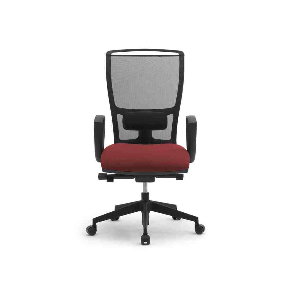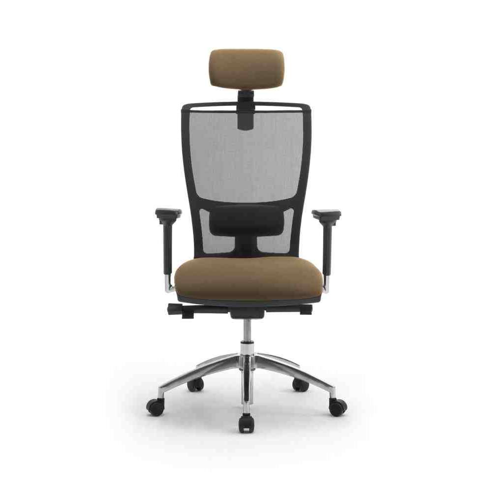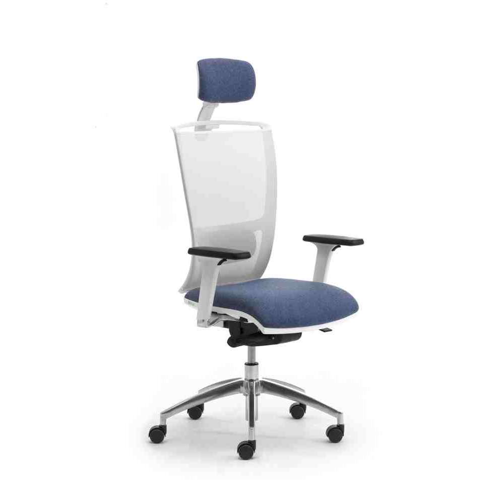 Zsynchronizowany mechanizm przechylania + przesuwane siedzenie. Oparcie z siatki o regulowanej wysokości ze zintegrowaną regulacją podparcia lędźwiowego. Kolory oczek: czarny, szary i biały. Podstawa z polerowanego aluminium lub czarnego nylonu. Samohamowne kółka z nylonu. 3-D (wysokość, szerokość, obrót) lub 4-D (+ regulacja szerokości) lub stałe ramiona z pętlą z miękkimi nakładkami lub stałe ramiona PP. Opcjonalnie regulowany zagłówek. Rama wspornikowa dla gości z podłokietnikami.
