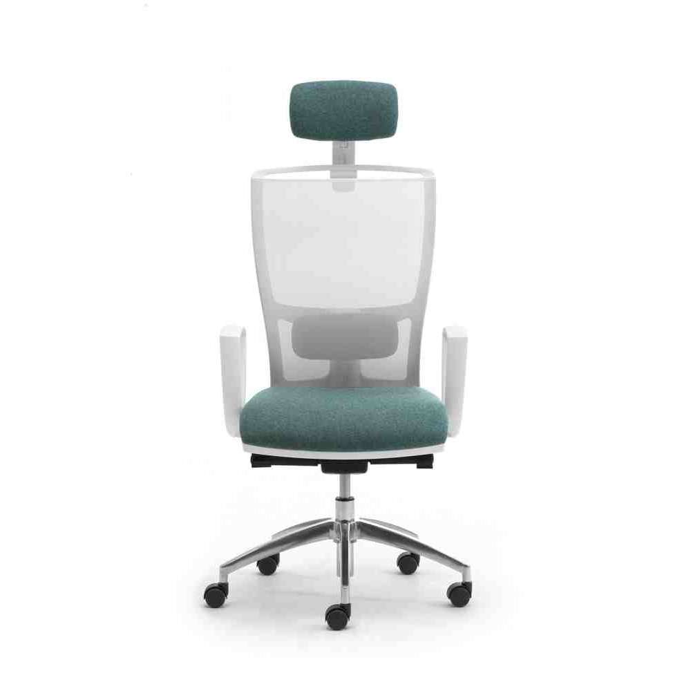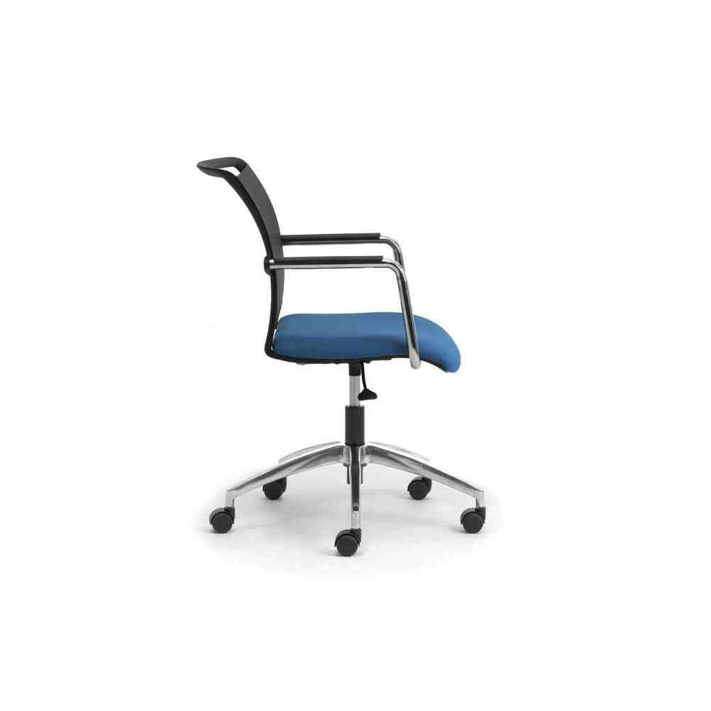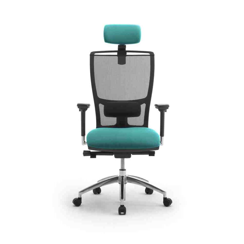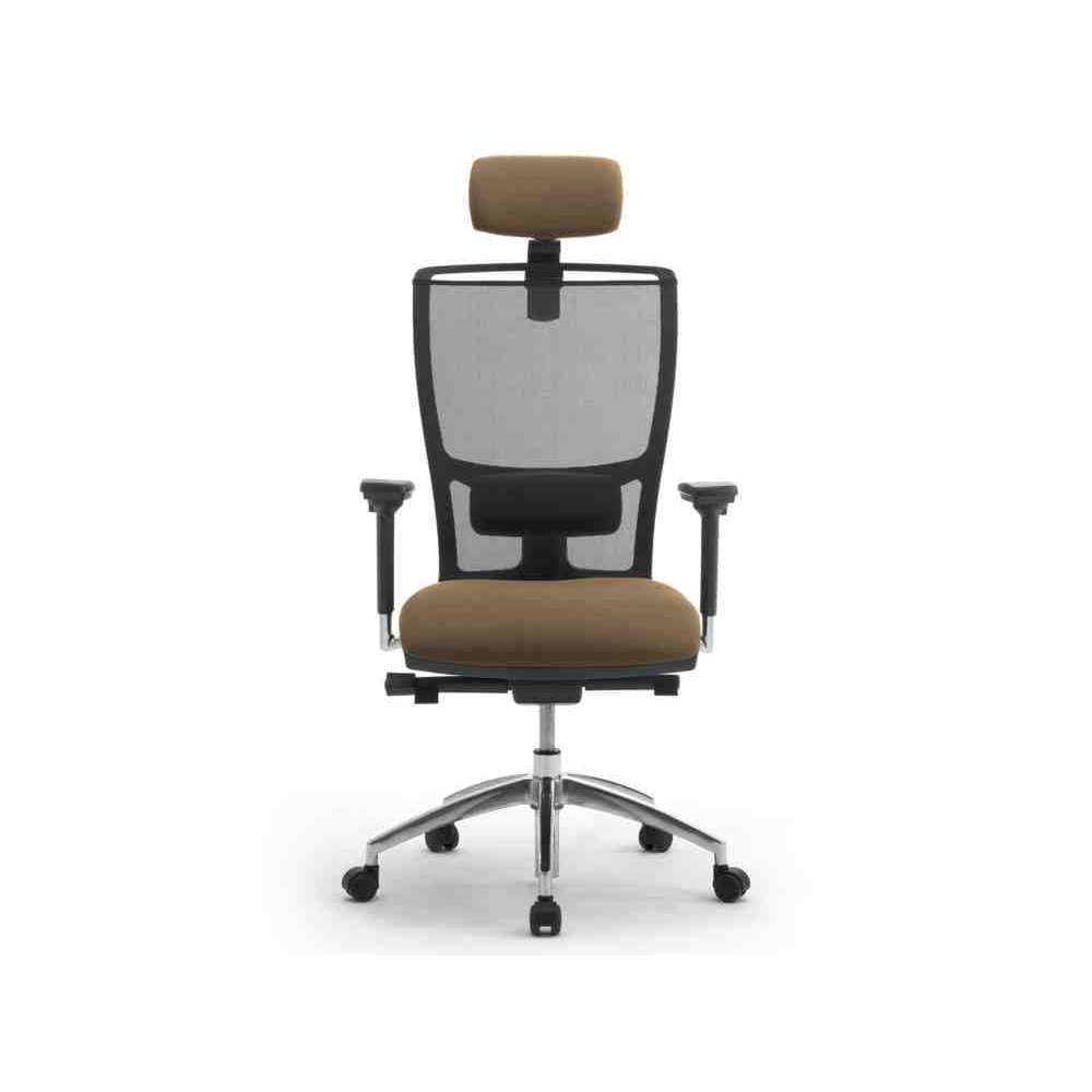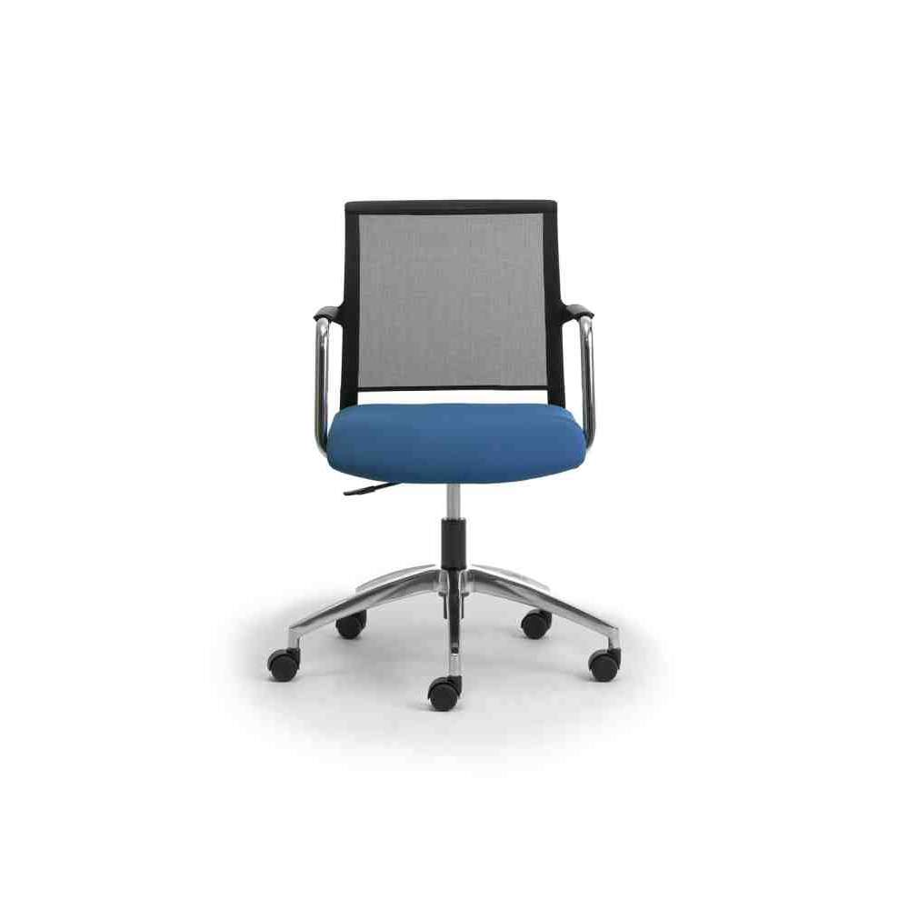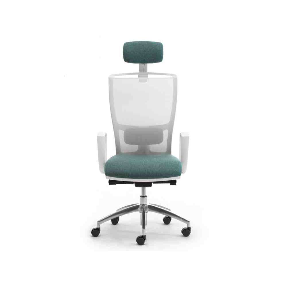 Zsynchronizowany mechanizm przechylania + przesuwane siedzenie. Oparcie z siatki o regulowanej wysokości ze zintegrowaną regulacją podparcia lędźwiowego. Kolory oczek: czarny, szary i biały. Podstawa z polerowanego aluminium lub czarnego nylonu. Samohamowne kółka z nylonu. 3-D (wysokość, szerokość, obrót) lub 4-D (+ regulacja szerokości) lub stałe ramiona z pętlą z miękkimi nakładkami lub stałe ramiona PP. Opcjonalnie regulowany zagłówek. Rama wspornikowa dla gości z podłokietnikami.